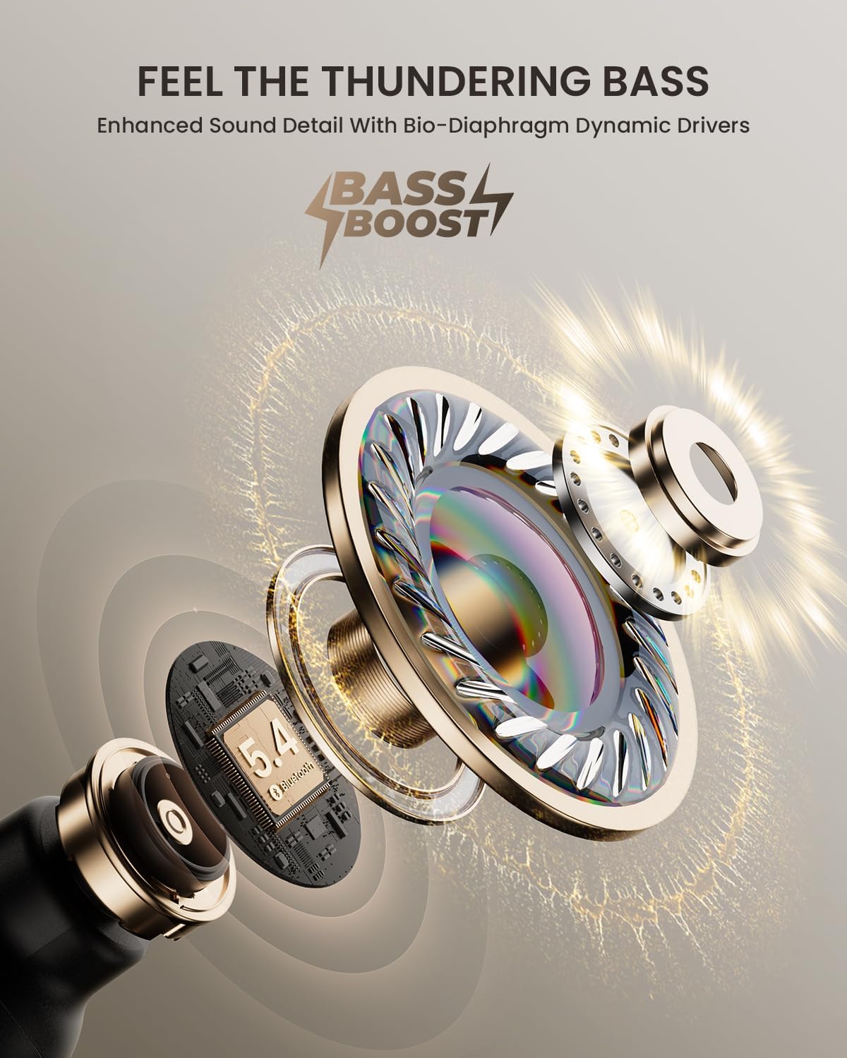 Wireless in-Ear Earbuds with 4 Mics ENC Call-Enhancing Rophones, 40H Playtime, Bluetooth 5.4, IPX5 Waterproof, True Wireless Earbuds for Laptops, Tablets, Smartphones, and Gym Workouts, Black