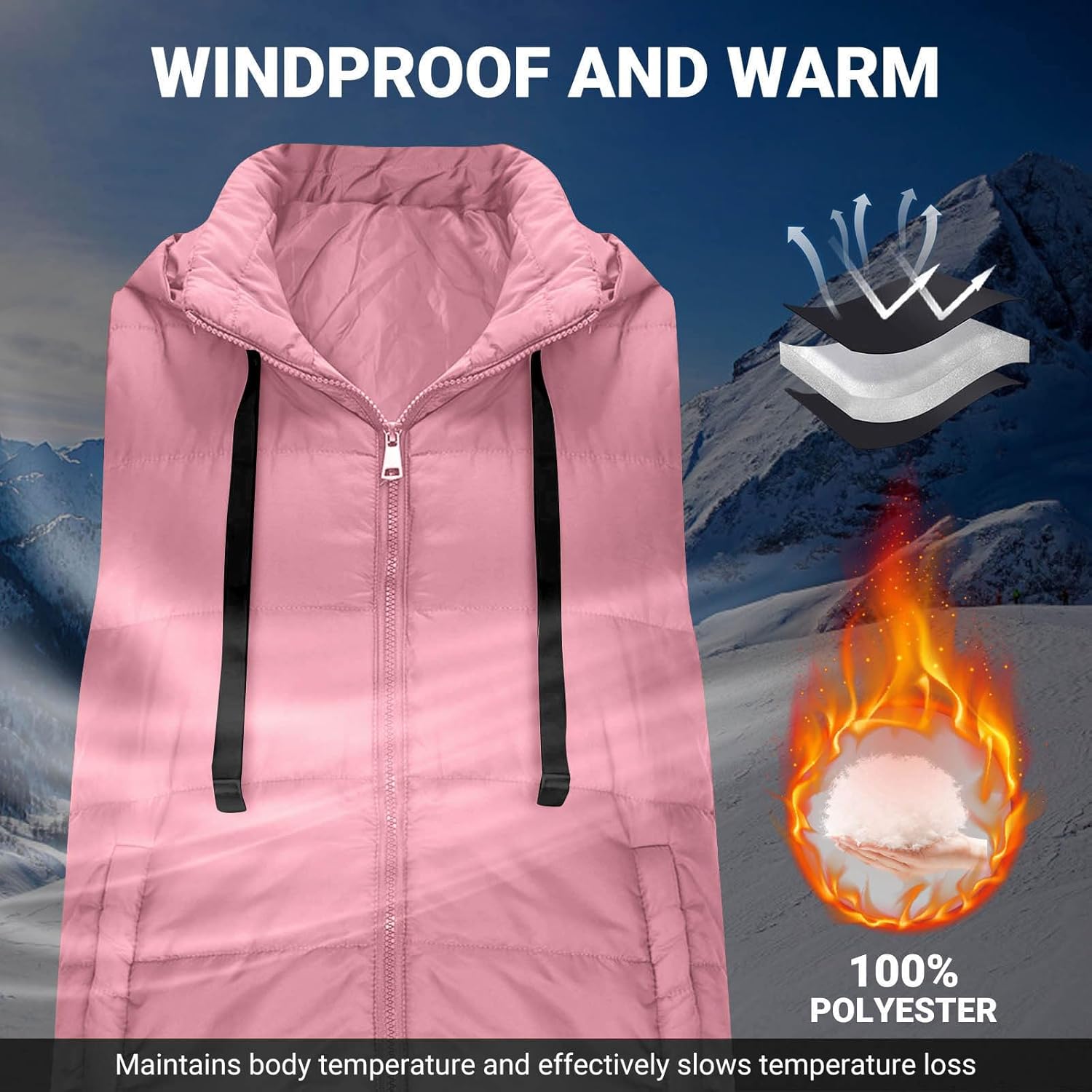 - 55% Long Puffer Vest For Women 2025 Quilted Puffy Hooded Vests Zip-Up Pocket Fall Plus Size Warm Sleeveless Jacket Coats