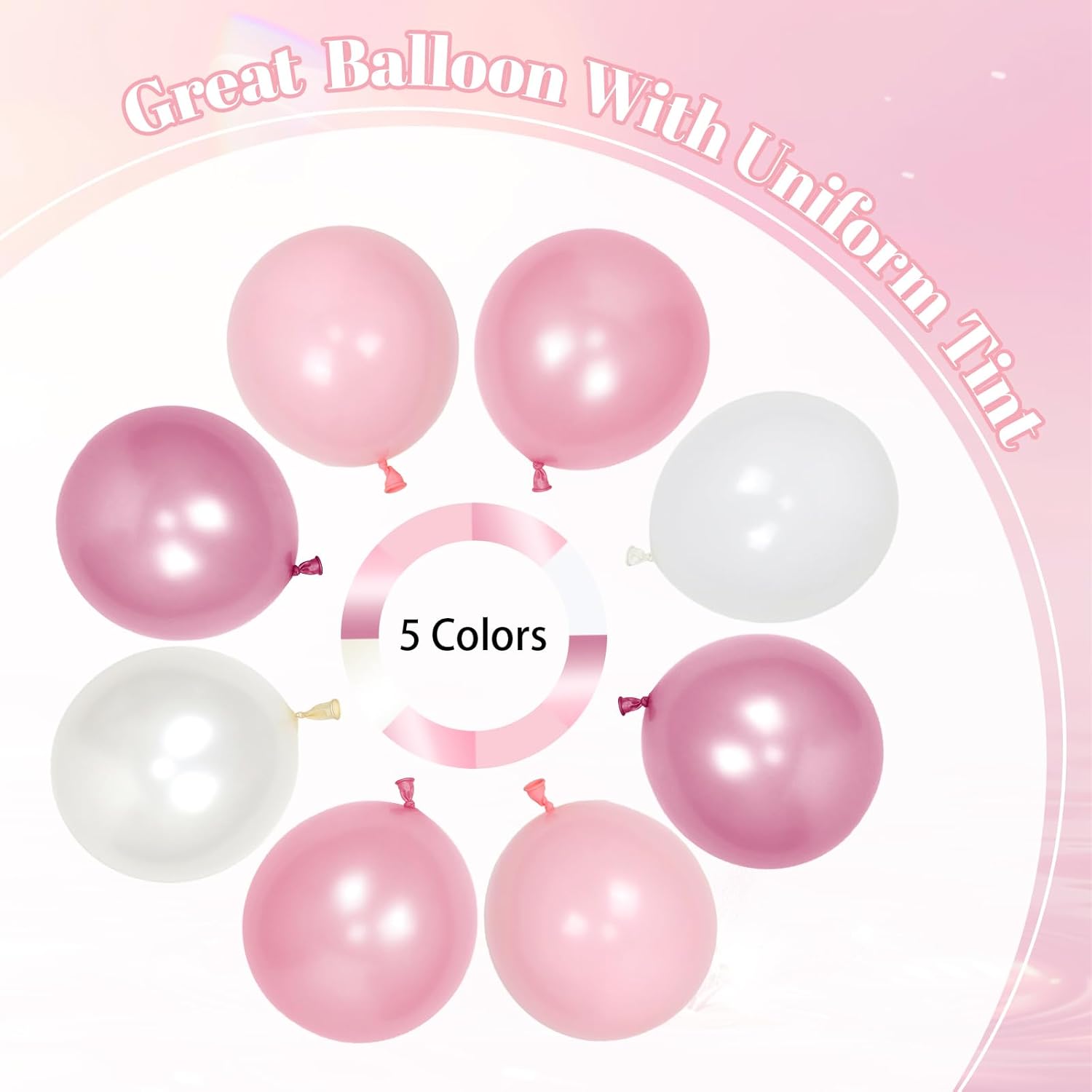 Pink Birthday Decorations with Pearl White Light Pearl Metallic Pink Foil Balloons Fringe Curtain Banner for Happy Birthday Decorations for Women