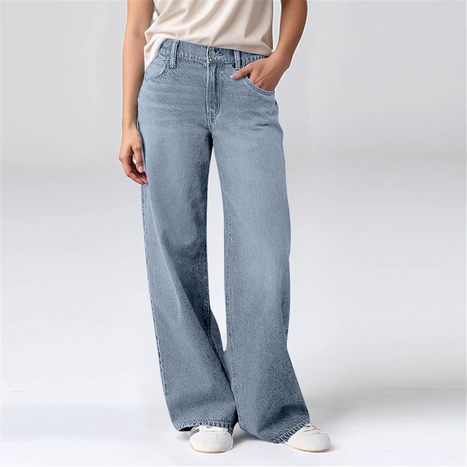 Women’s Baggy Jeans 2025 Trendy Stretchy Straight Wide Leg Casual Distress Mid Waist Denim Pants Vintage Y2K Trousers