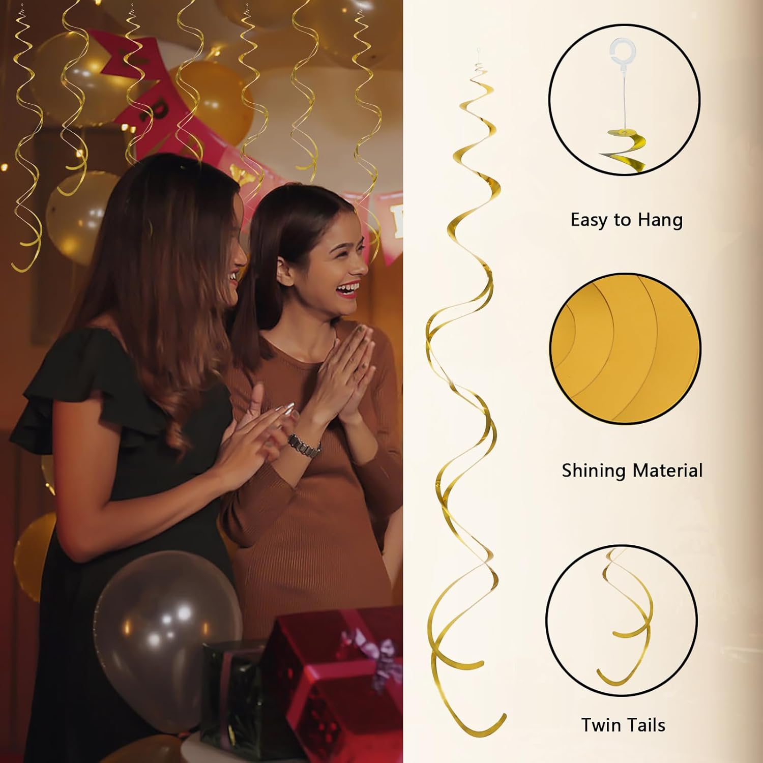 Gold Hanging Swirl Decorations 30 Pcs, Streamers Party Decorations -Twin Tails Ceiling Swirl Foil Decorations, Gold Party Decor for Wedding/Birthday/Christmas/New Year Decoration (Gold, Pack of 30)