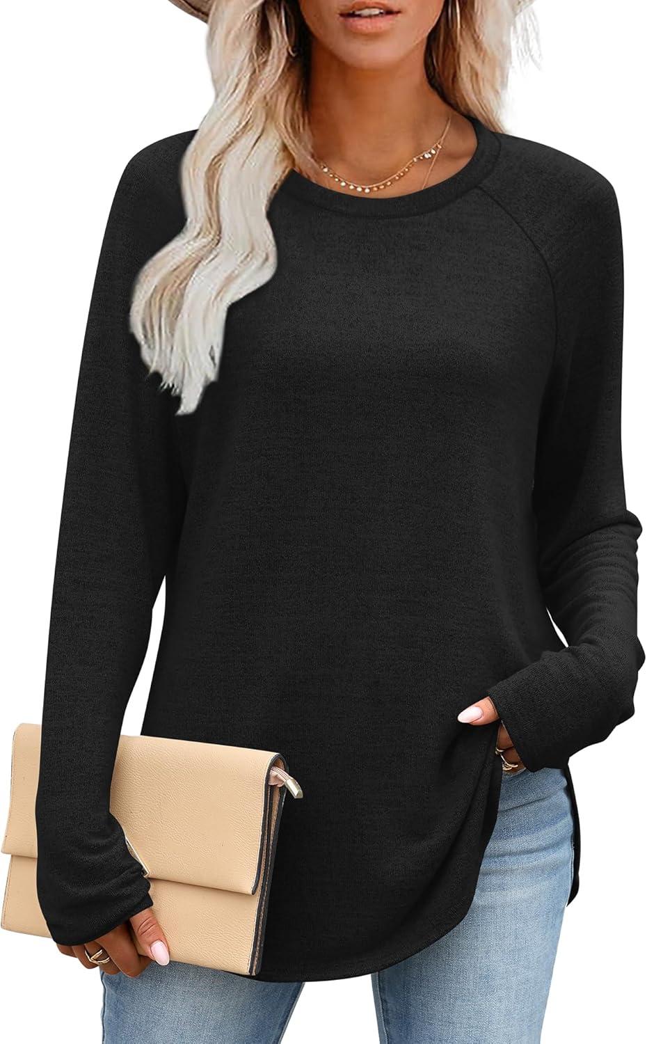OFEEFAN Long Sleeve Shirts for Women Loose Fit Tunic Tops dressy casual Crew Neck Pullover Sweaters fall Outfits Clothes 2025