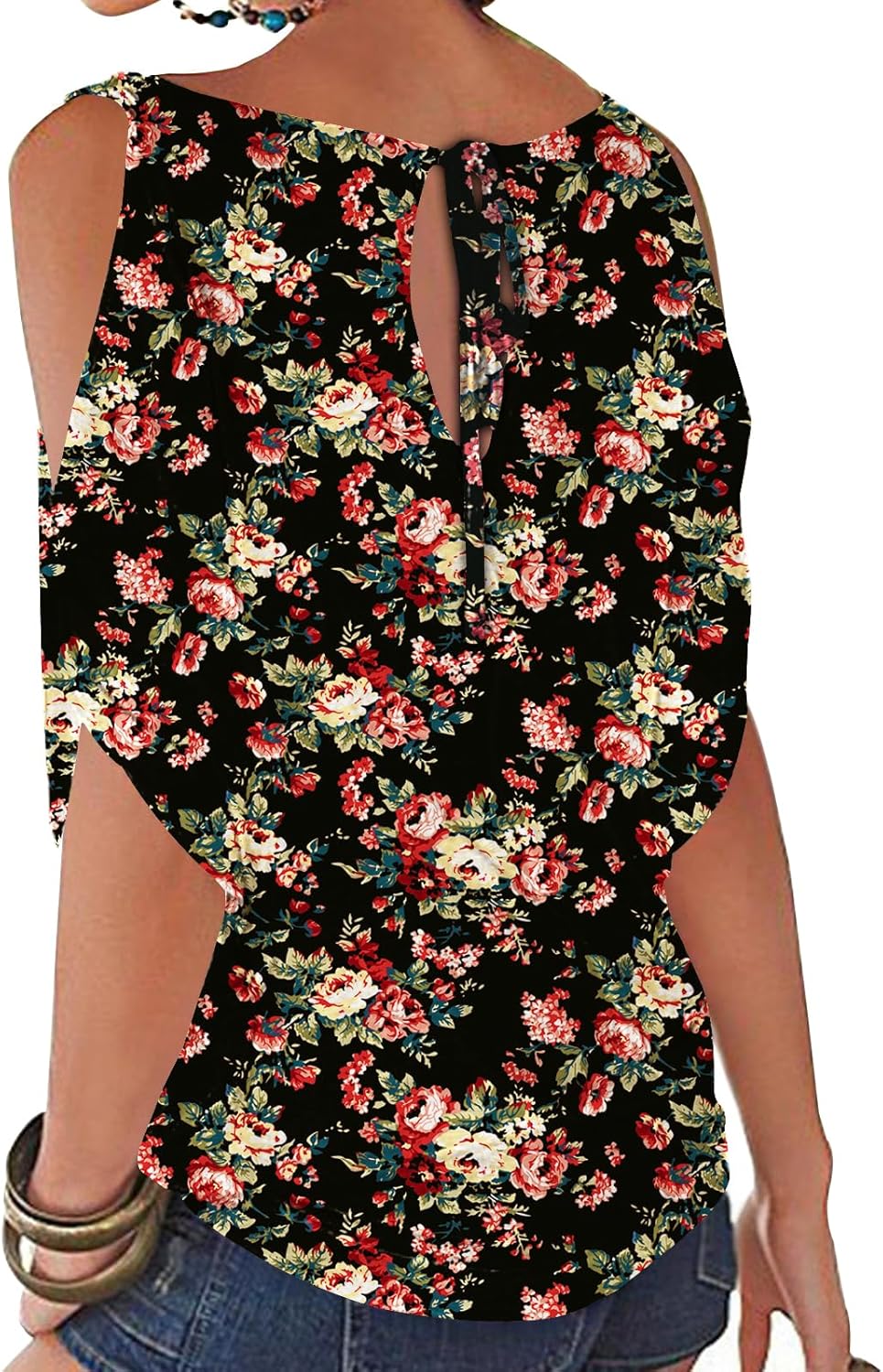 Women’s Cold Shoulder Tops Summer Casual Short Sleeve Blouse Tees