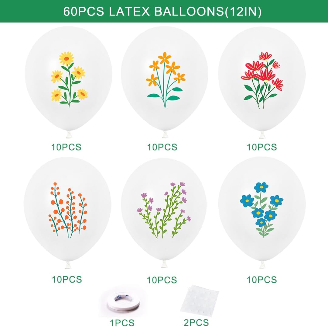 60PCS Wildflower Balloons Spring Flower Balloons Wildflower Party Decoration for Floral Party Tea Party Baby Shower Birthday Decoration
