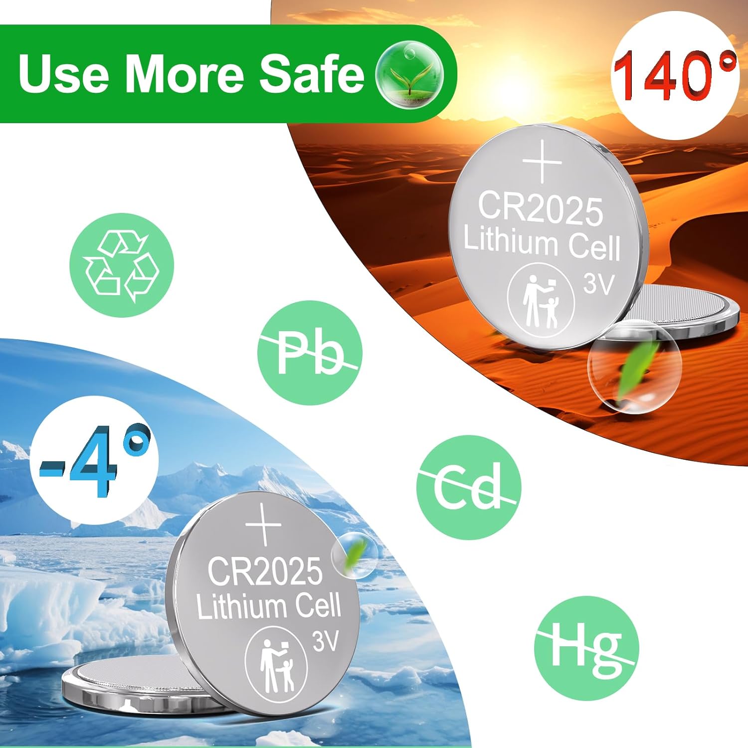 DURNERGY CR2025 3V Lithium Battery 100 Pack, for Car Remote Key, 2025, ECR2025, KCR2025, BR2025, DL2025, LM2025, KT-CR2025, SB-T14