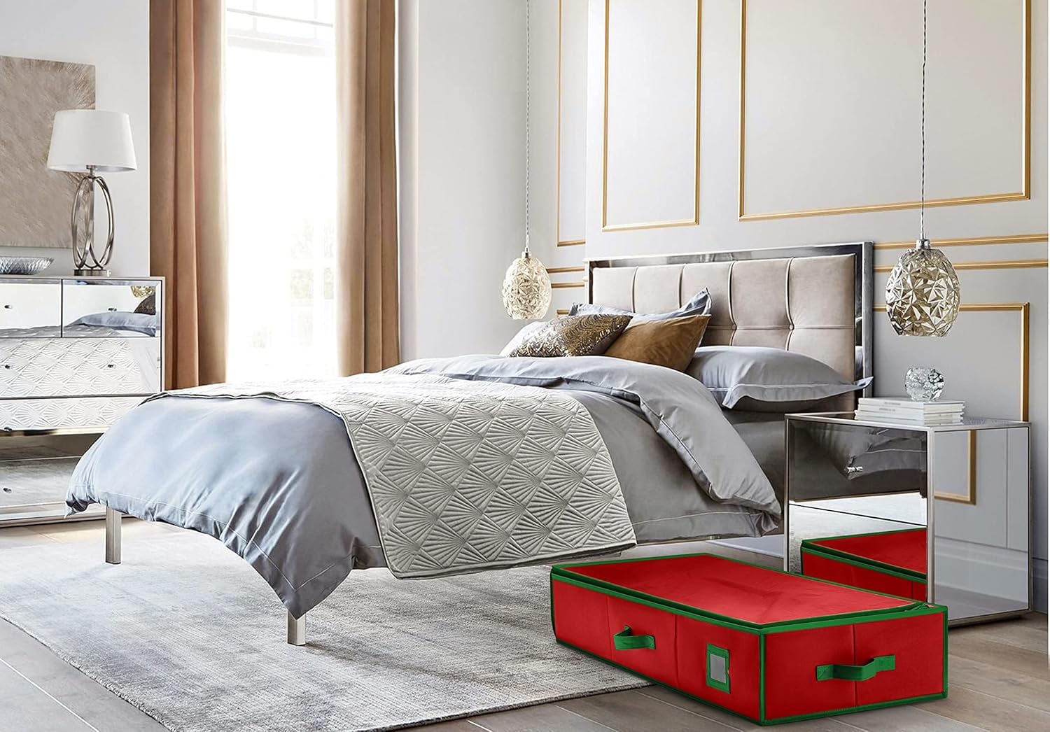Premium Gift Wrap Organizer, Christmas Wrapping Paper Storage Bag w/Useful Pockets for Xmas Accessories, Fits upto 24 Rolls, Large Capacity Storage Box, 1 Count (Pack of 1)