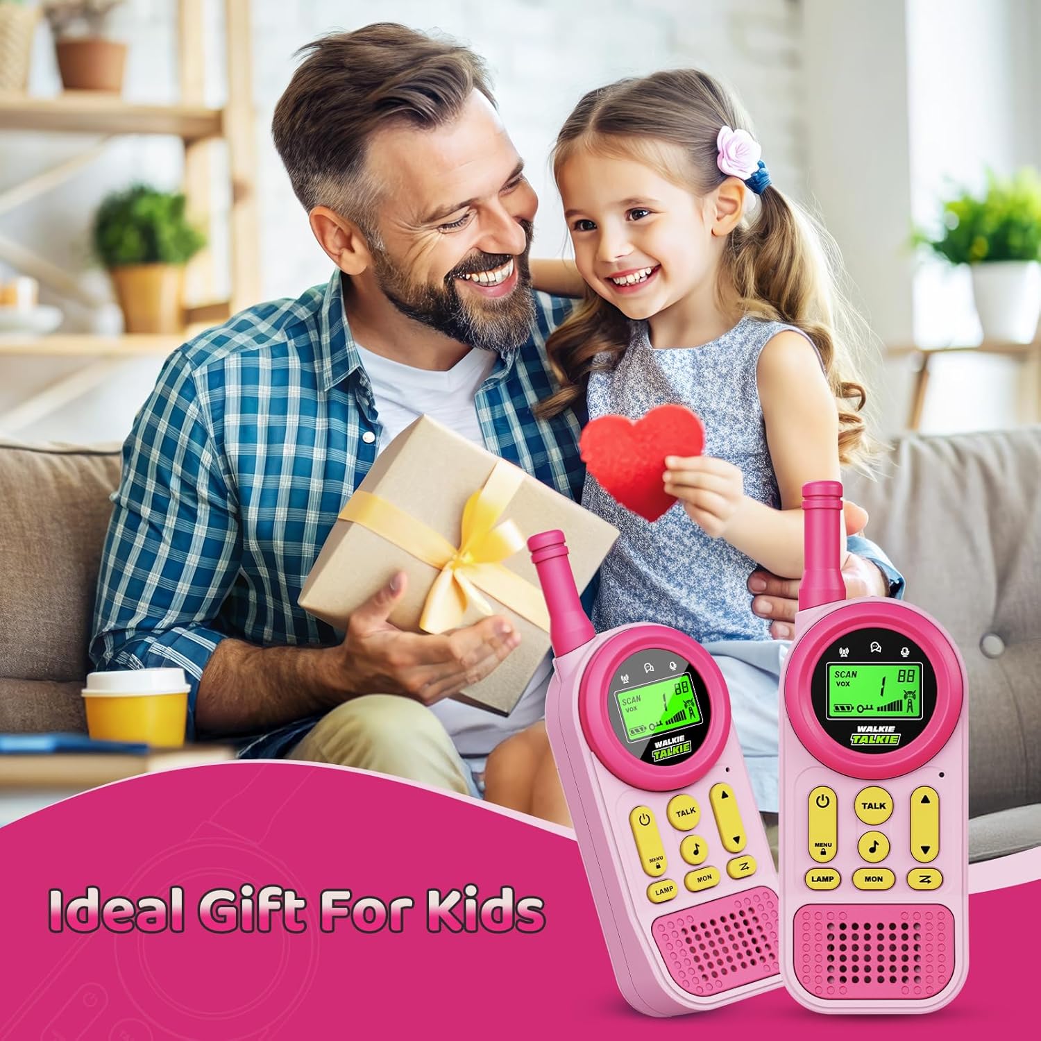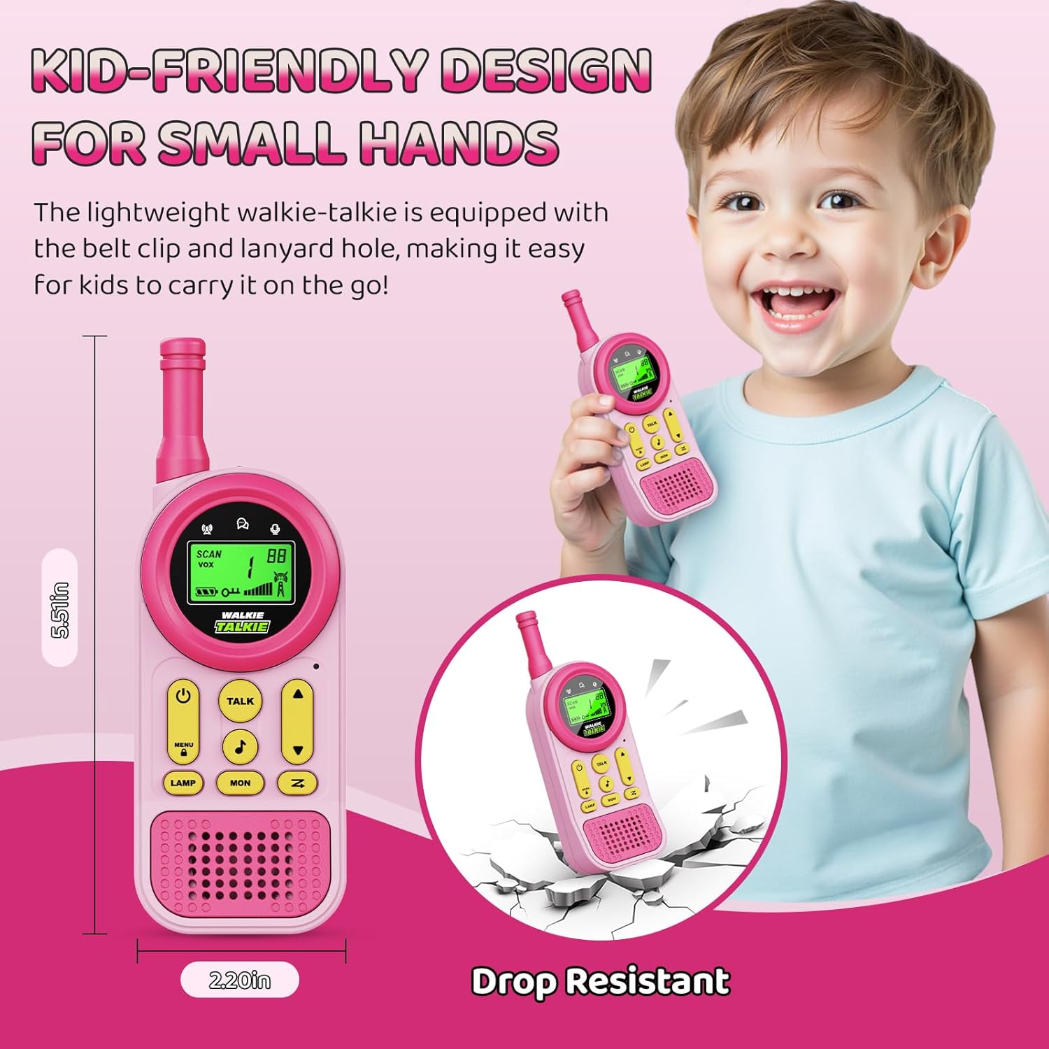 Walkie Talkies for Kids Toys: Toys for 3-12 Year Old Boys Girls – 22 Channels 2 Way Radio Toy with Backlit LCD Flashlight – 3 Miles Range for Outside/Camping/Hiking (2-Pack),Pink