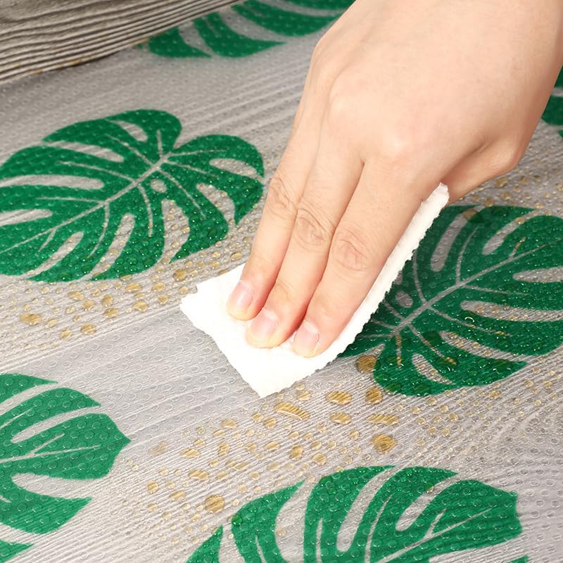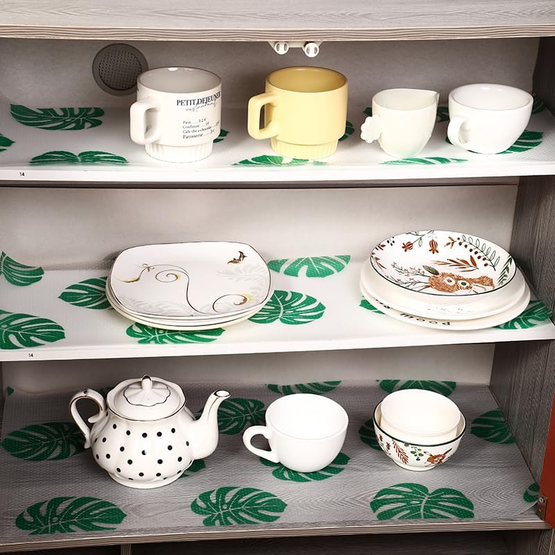 Monstera Shelf Liner for Drawers and Cabinets – Non Adhesive Waterproof Washable Cabinet Liner, Decorative Tropical Leaves Contact Paper for Kitchen Shelves, Pantry, Closet, Fridge