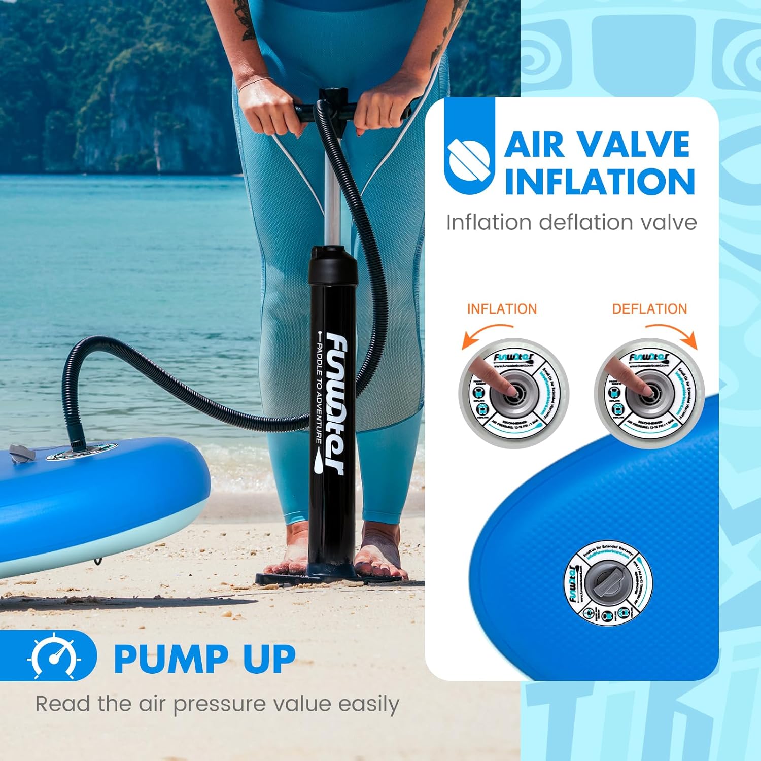 - 44% FunWater 8’/10’/10’6″/11’6″ Inflatable Stand Up Paddle Board with Premium SUP Paddleboard Accessories, Wide Stable Anti-Slip EVA Deck,Paddle Boards for Adults & Youth of All Skill Levels