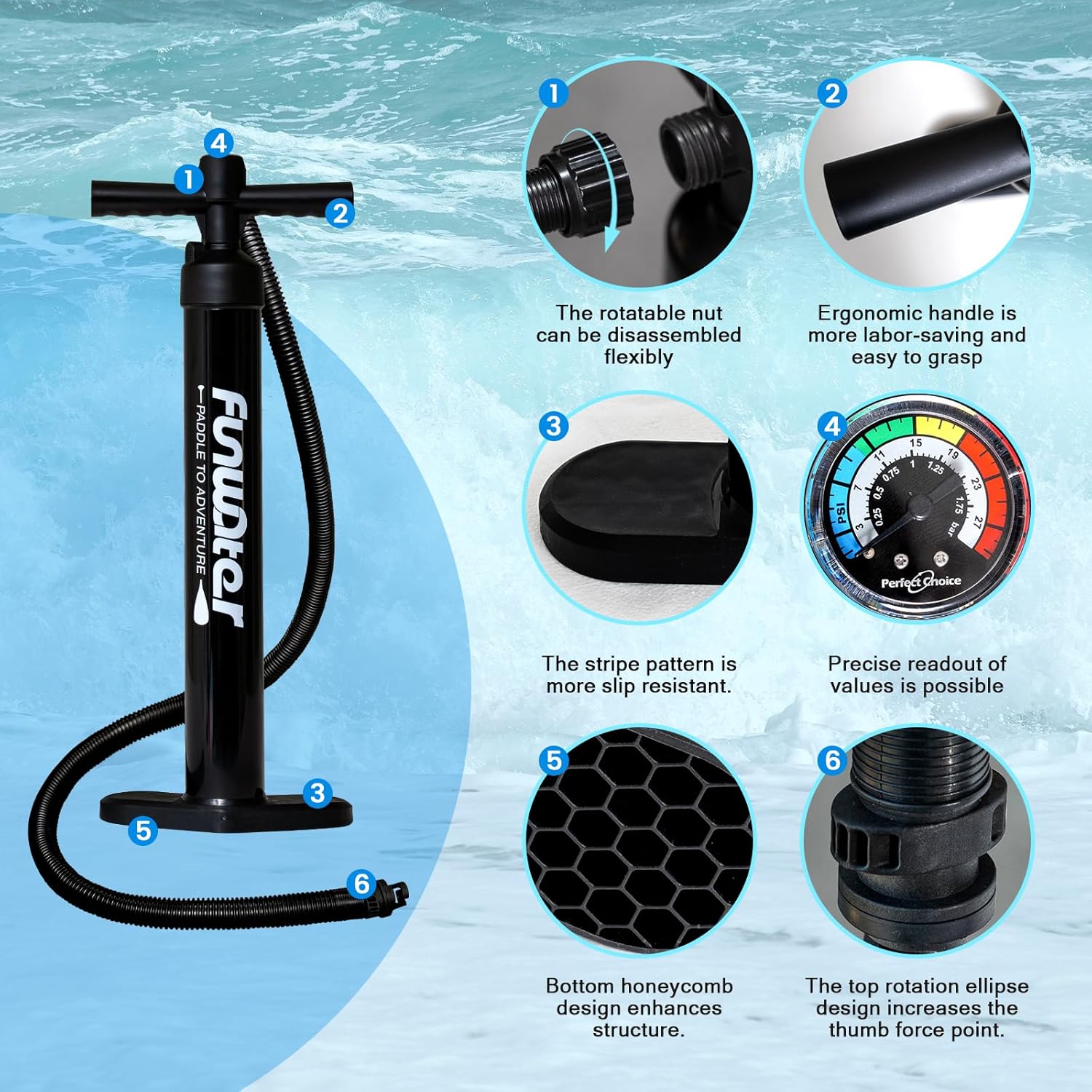 【Paddle Board Size】FunWater paddle boards are designed with 11′ 6″length, 33″ width and 6″ thickness, carrying 450 pounds, great balance and stability, ideal for kids, adults, beginners and experienced surfers, you can surf, paddle, yoga and fish on it and have a wonderful experience!