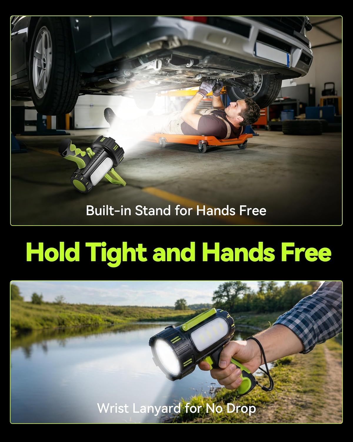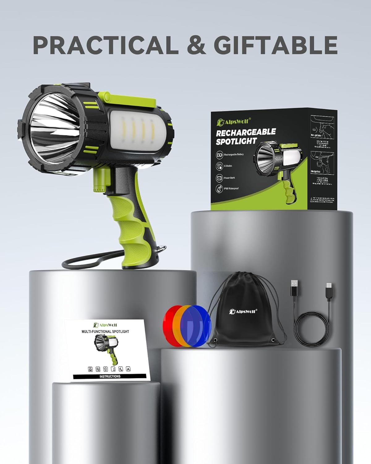 AlpsWolf Rechargeable Flashlights High Lumens, Super Bright 10000mAh Spotlight Flashlight with Built-in Stand & 3 Color Lenses, Water-Resistant LED Handheld Flashlight for Camping, Search, Emergencies