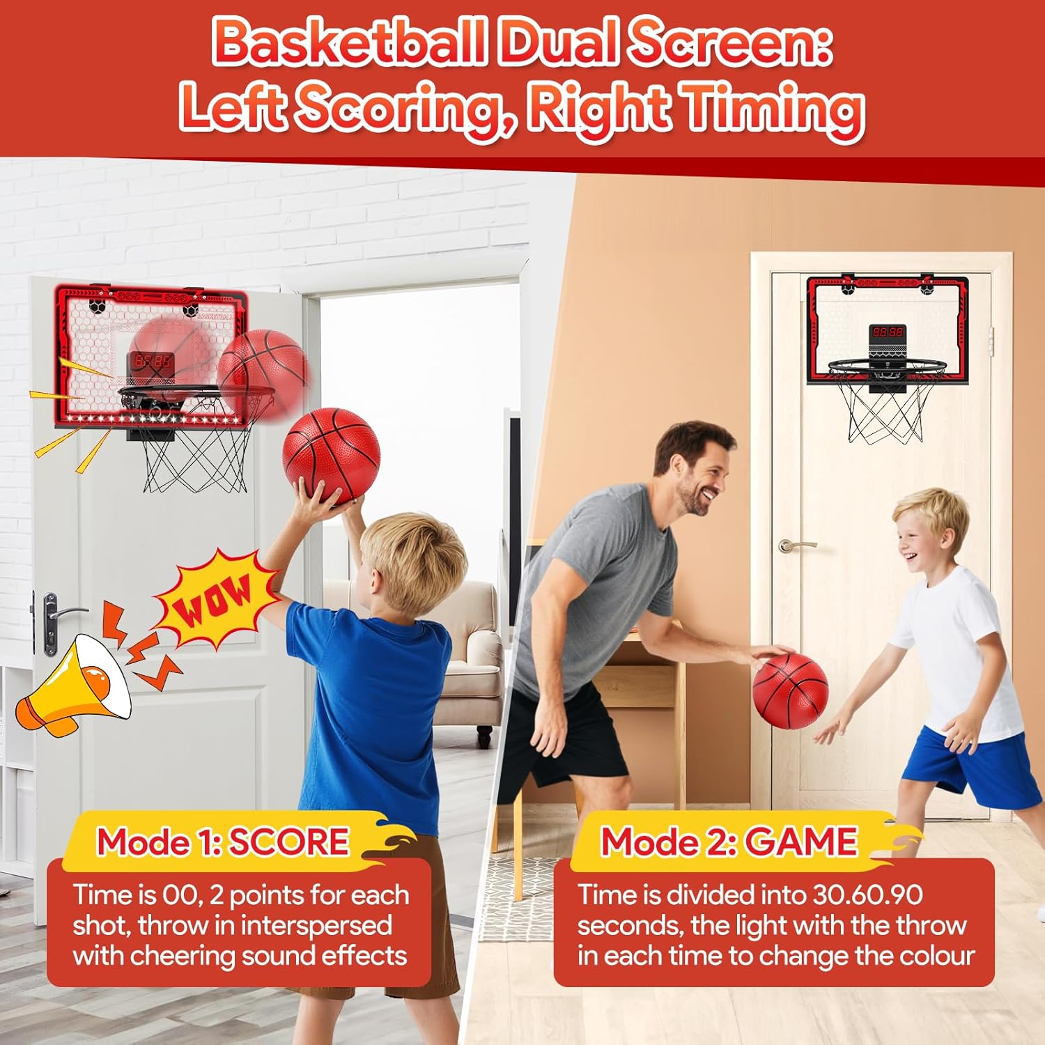 - 47% Indoor Basketball Hoop for Kids, Remote Control Basketball Hoop Indoor with Electronic Scoreboard/7-Color LED Lights/2 Modes/3 Balls, Foldable Design, Cool Basketball Gifts for Boys 8-12 (Red)