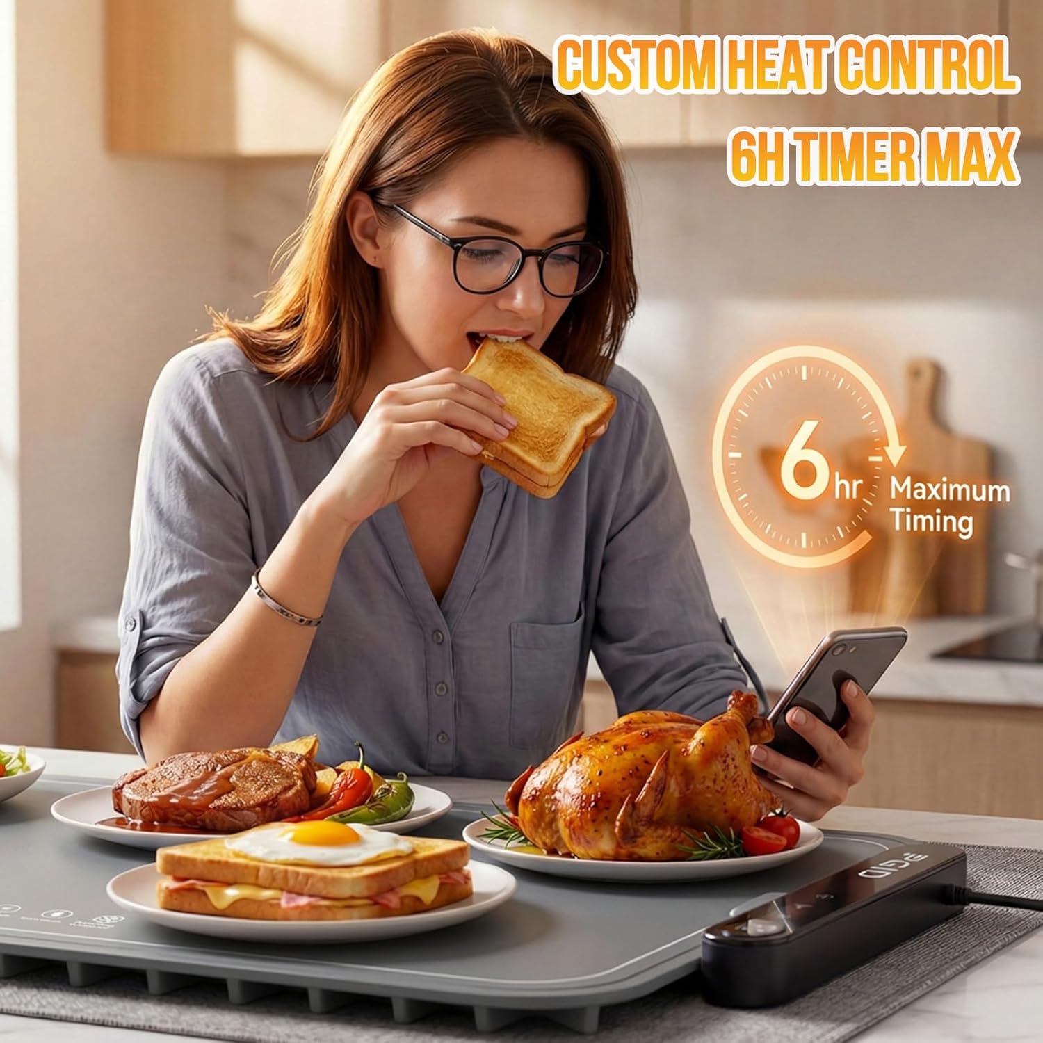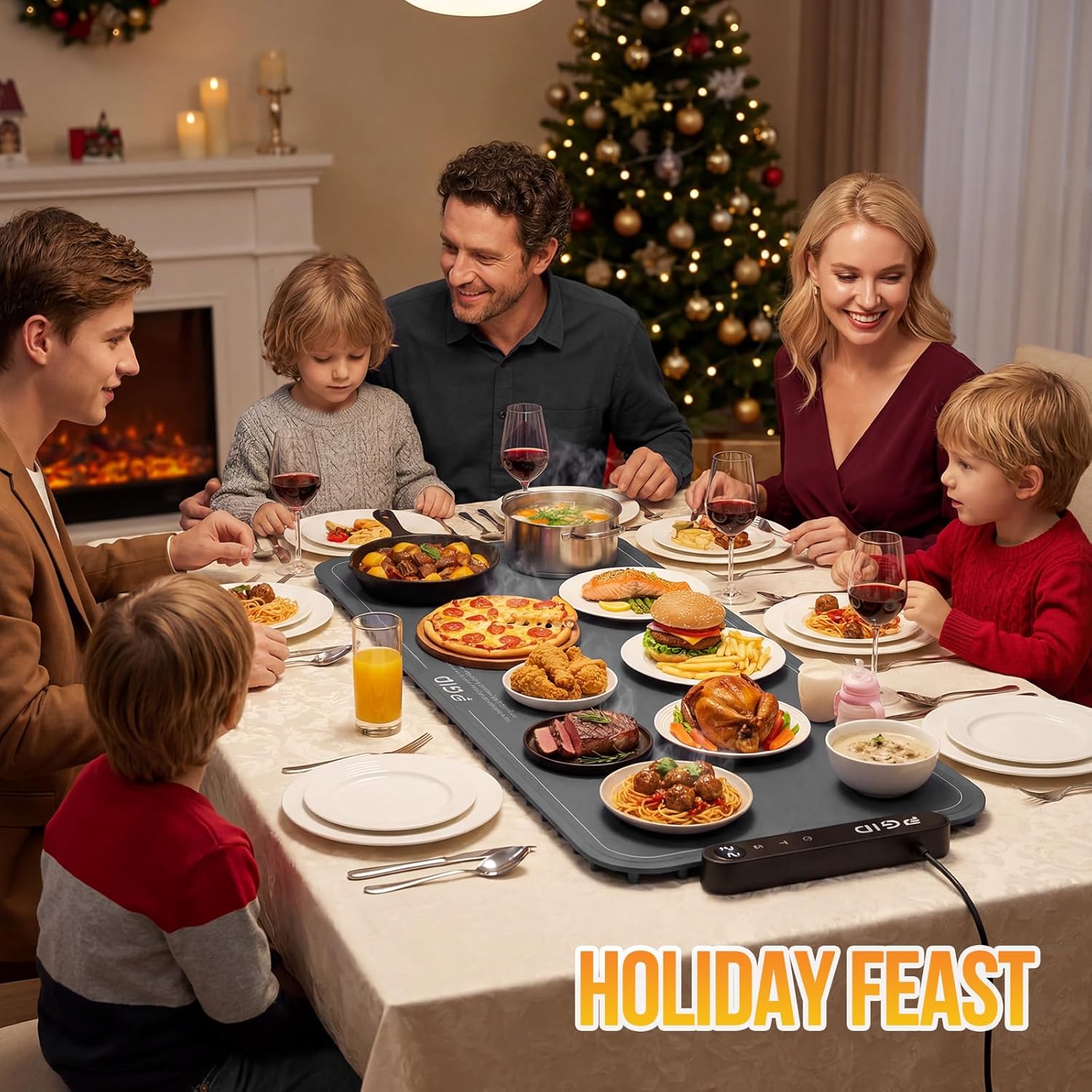 Warming Mat for Food XXL 36″x16″ with Touch Screen,Dishwasher Food Warming Mat, 6 Level Temp 6 Hour Timer, Silicone Food Warmer Trays for Chafing Dishes & Buffet,Child Lock, 8s Fast Heating (Gray)