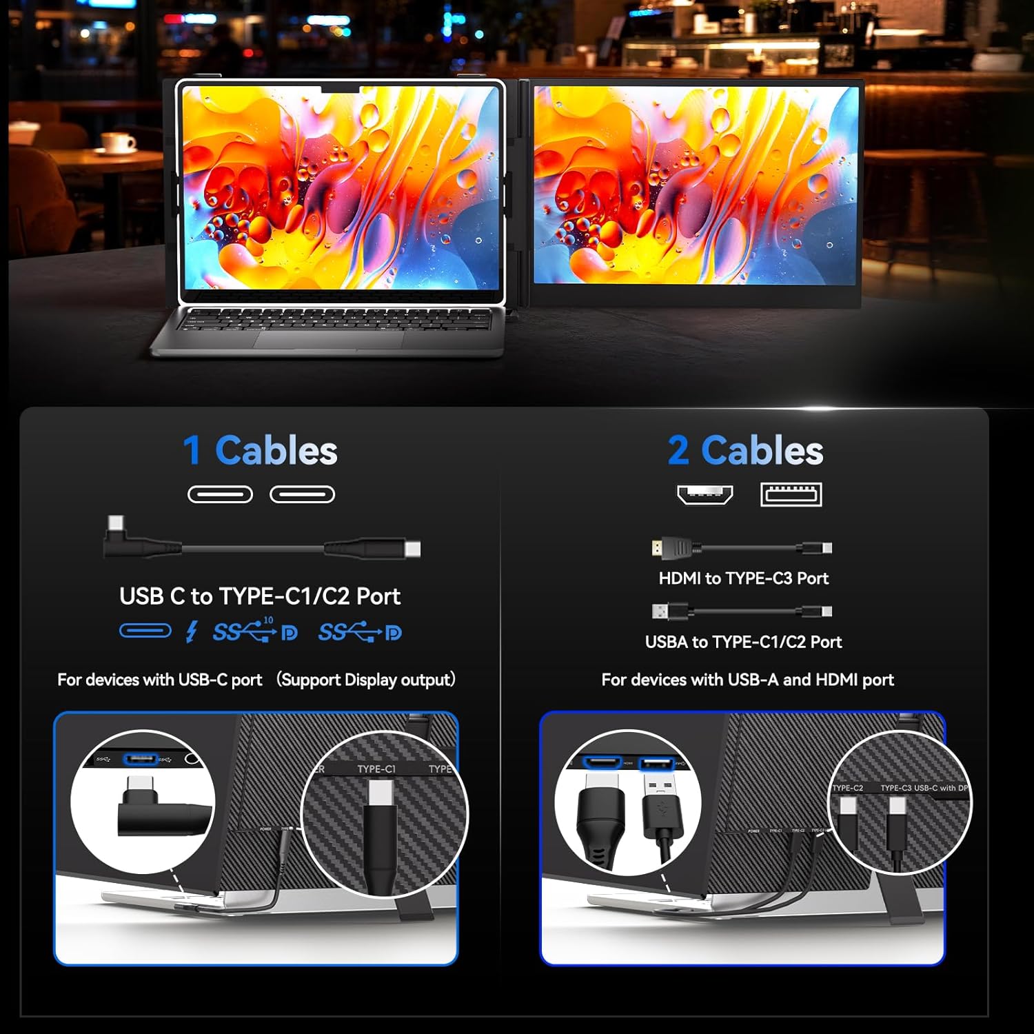 Laptop Screen Extender, 1.3lb Ultra Lightweight 14″ 1080P FHD Portable Monitor for Laptop, Plug & Play Dual Travel Screen Monitor, Laptops Dual Monitors Attachment, Fits Windows/Mac/Android/Chrome