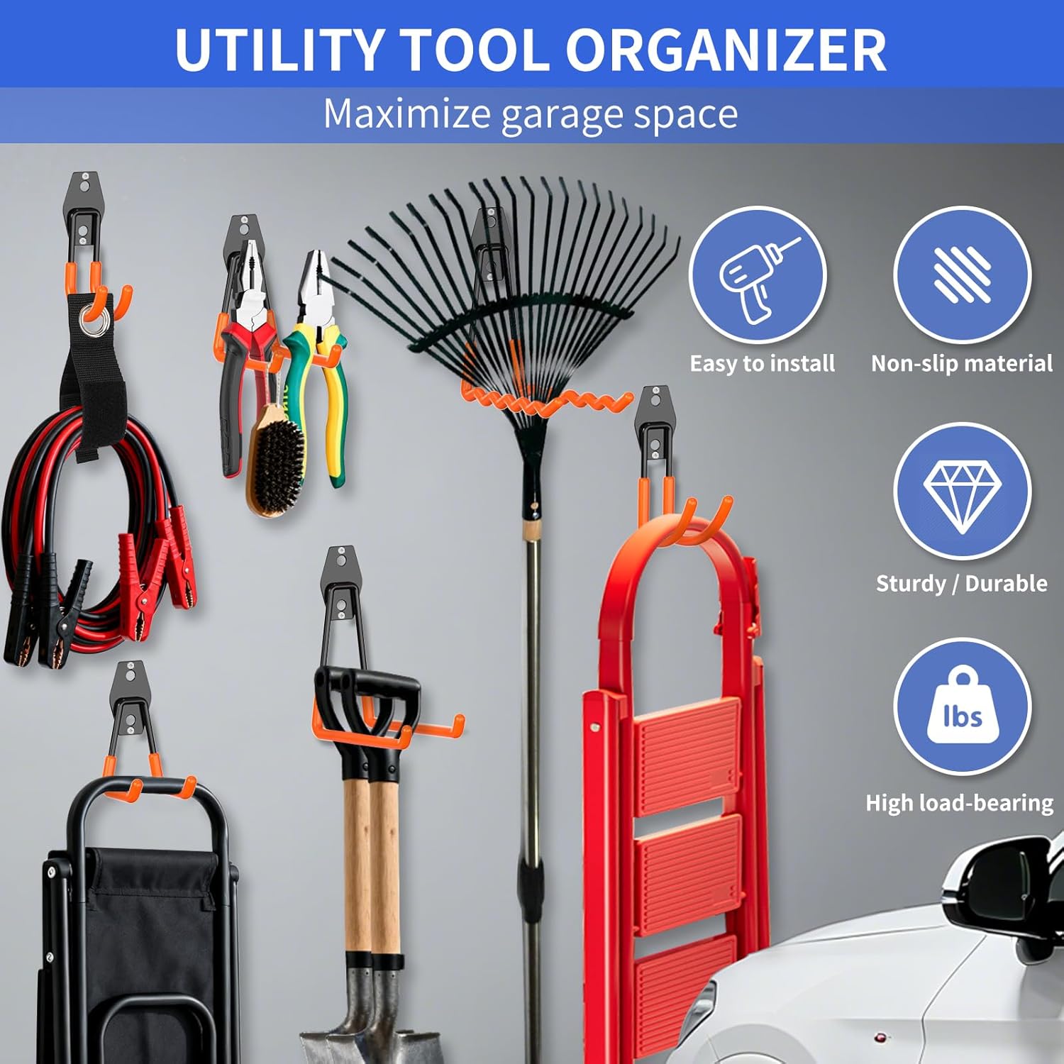 đźš« Non-Slip PVC Coating & Scratch Protection: Ladder hangers with the wave-shaped PVC coating prevents slipping and protects surfaces from scratches. Safely hang shovels, rakes, hoses, or sports gear without damaging paint or finishes for year-round garage/outdoor use.Perfect for organizing ladders, bikes, power tools, garden equipment, and other bulky items in your garage or workspace.