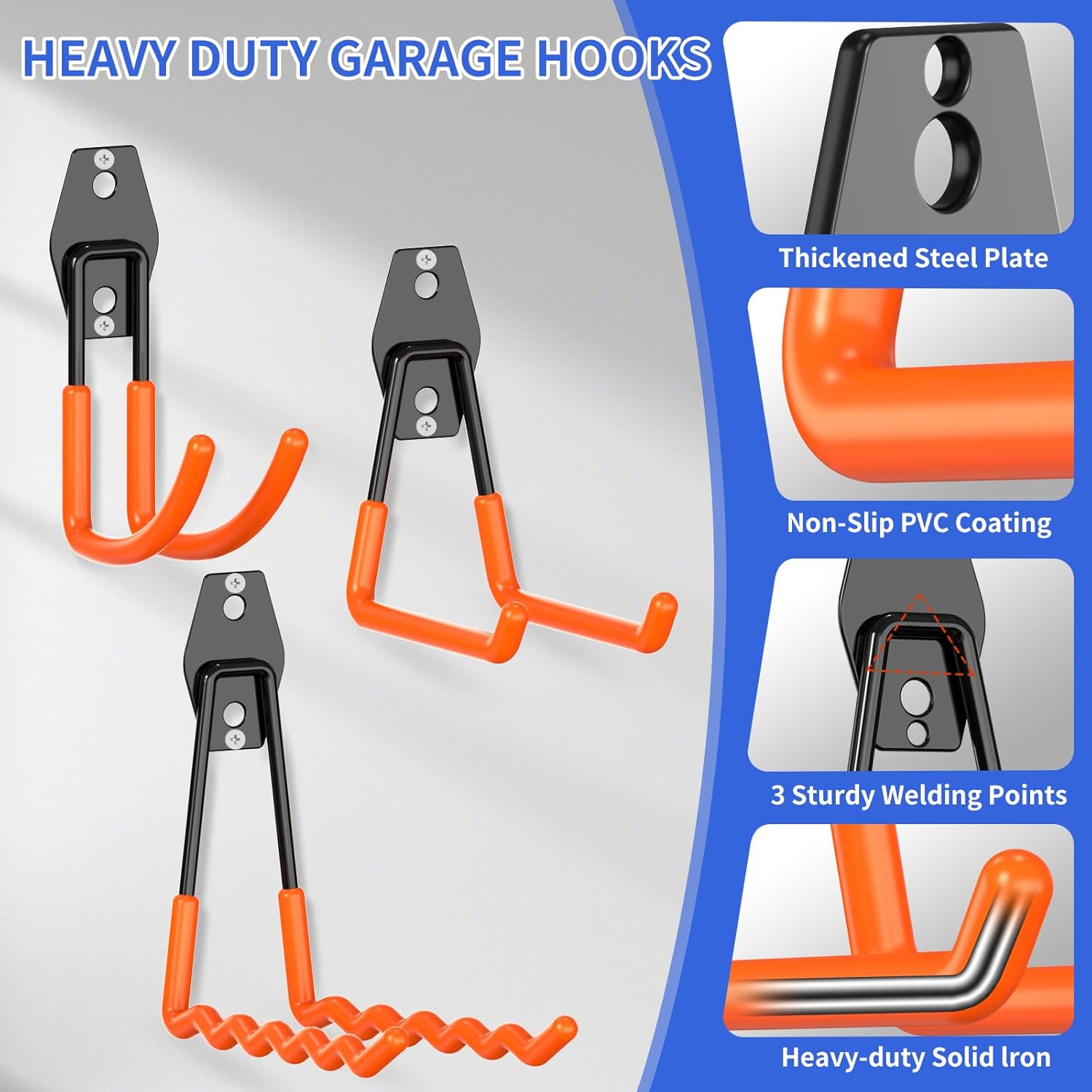 Heavy Duty Garage Hooks 11 Pack, Garage Storage Hooks with Non-Slip PVC Coating, Utility Steel Wall Mount Hook for Bike, Ladder, Tools, Hose & Garage Organization
