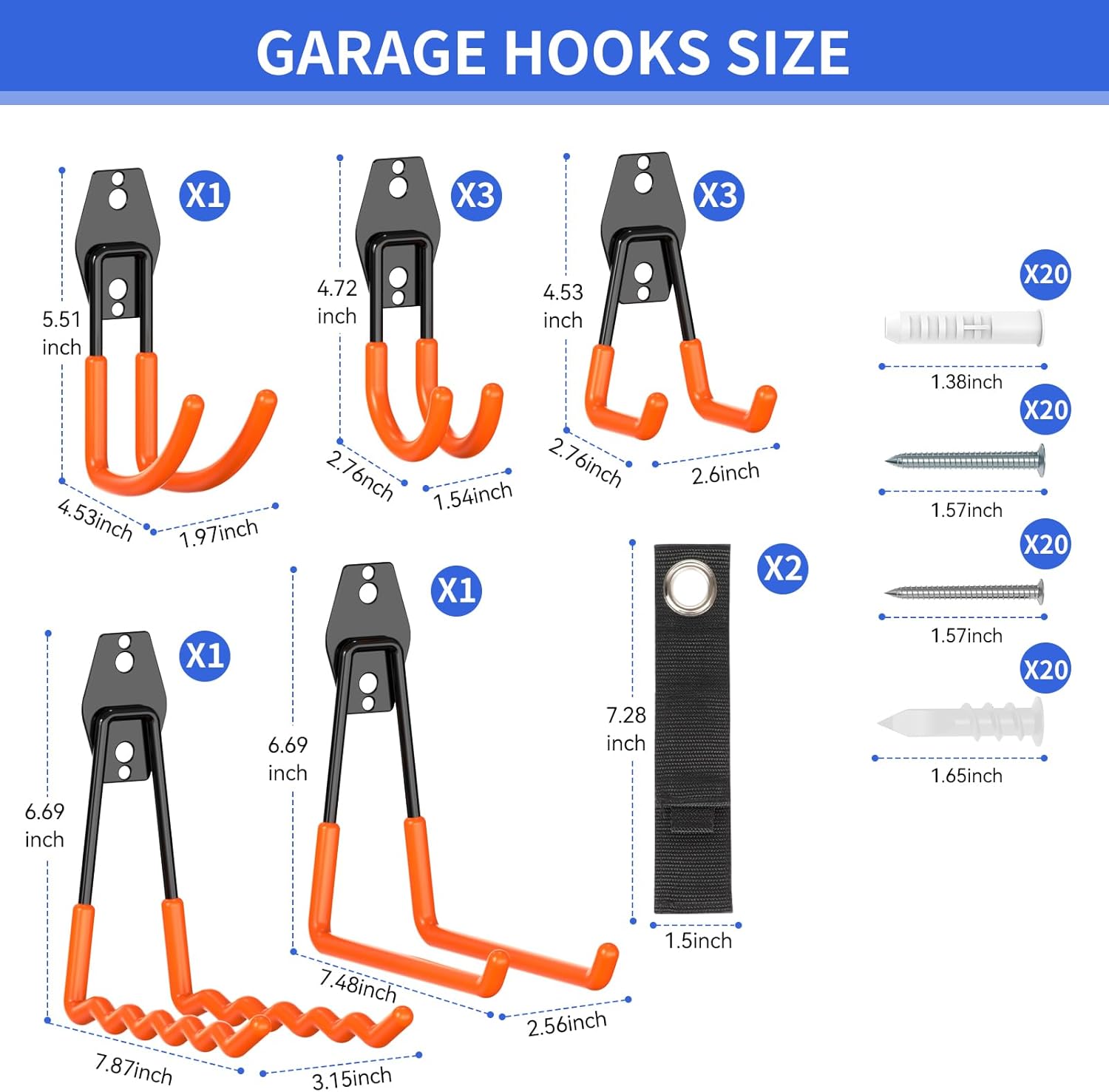 ✨ Bonus Nylon Extension Straps: Garage organization system comes with 2 black nylon straps (7.28″ length) for hanging cables, hoses, or awkwardly shaped items. Each strap holds up to 50LBS, expanding your storage possibilities, boosting organization efficiency by 40% with these value-added accessories.