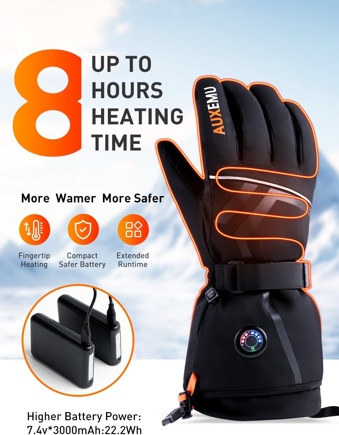 - 55% Auxemu Heated Gloves for Men Women, 7.4V Fast Heating 8H Warmth Heated Gloves with Visual Button Touchscreen/Reflective Strip/Waterproof for Motorcycle Riding, Skiing, Outdoor Work