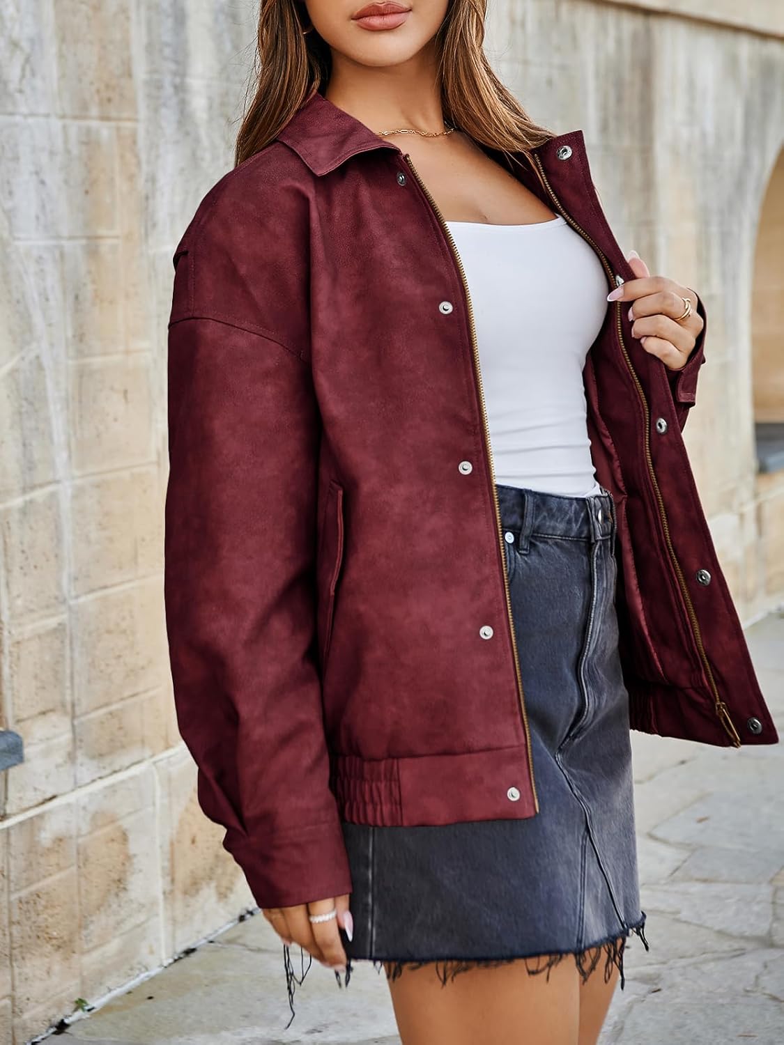 Tankaneo Womens Oversized Leather Jackets Trendy Zip up Bomber Motorcycle Coat 2025 Going out Outfits