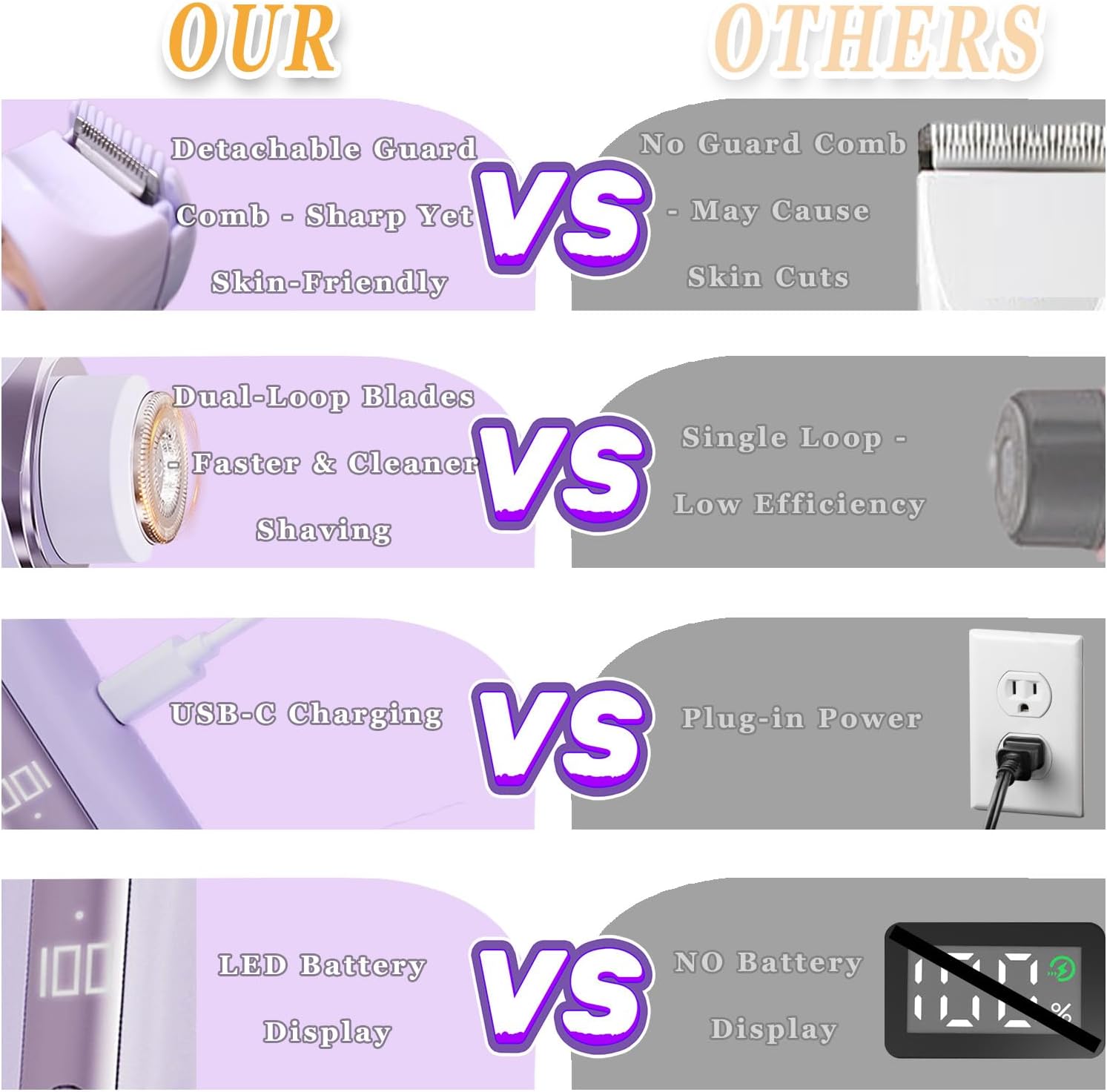 Cordless Convenience with LCD Display : Features USB-C charging (cable included) and LCD power indicator. Enjoy 25+ uses per charge. Compact travel-friendly design works anywhere – home, travel or gym. Never face dead battery surprises with this electric razor for pubic hair trimmer women
