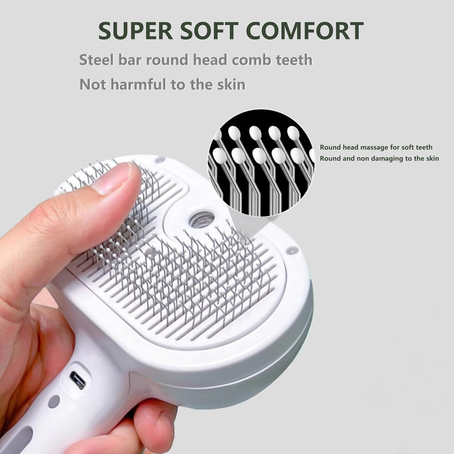 Pet Brush Hair Removal Steam,Steam Pet Spray Hair Removal Comb for Dogs with Anti-Lost Pendant,3 in 1 Self Cleaning Misting Cat Brush for Shedding for Long Short Haired, White
