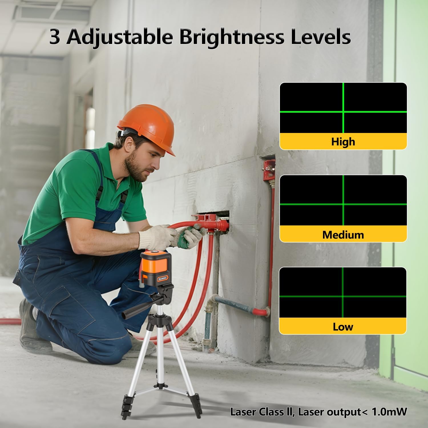 Laser Level with Tripod, LP LEIPOR Green Cross Line Lazer Leveler Tool for Picture Hanging Construction Floor Tile Wall Home Renovation, Indoor Project, Battery Included
