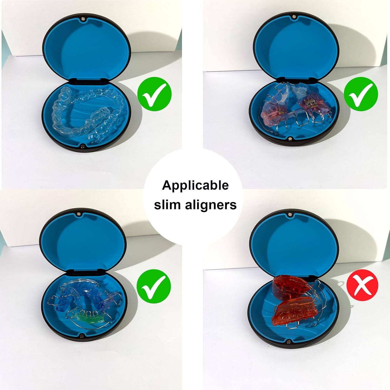 Portable: Measuring at 3.42 inches in diameter and 0.98 inches in height, the retainer case for invisalign is compact and travel-friendly, making it suitable for Invisalign aligners, night guards, mouth guards, and other dental products