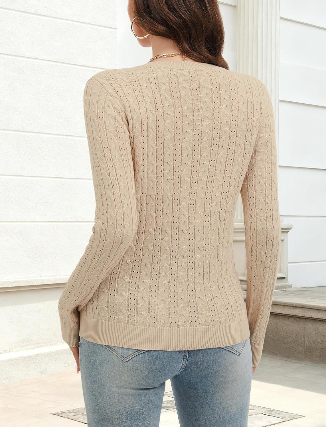- 86% Womens V Neck Sweaters Lightweight Long Sleeve Pullover Sweater Casual Soft Cable Knit Tops 2025 Trendy