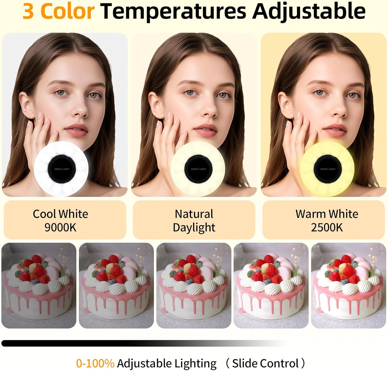 Adjustable Lighting Modes: This magnetic selfie light features three adjustable color temperatures—2500K (warm white), 4500K (natural daylight), and 9000K (cool white)—with seamless dimming from 10% to 100% brightness via an intuitive slide control. With a high CRI 95+, it delivers vibrant, true-to-life lighting perfect for selfies, TikTok livestreams, Zoom meetings, YouTube vlogs, and professional video content.