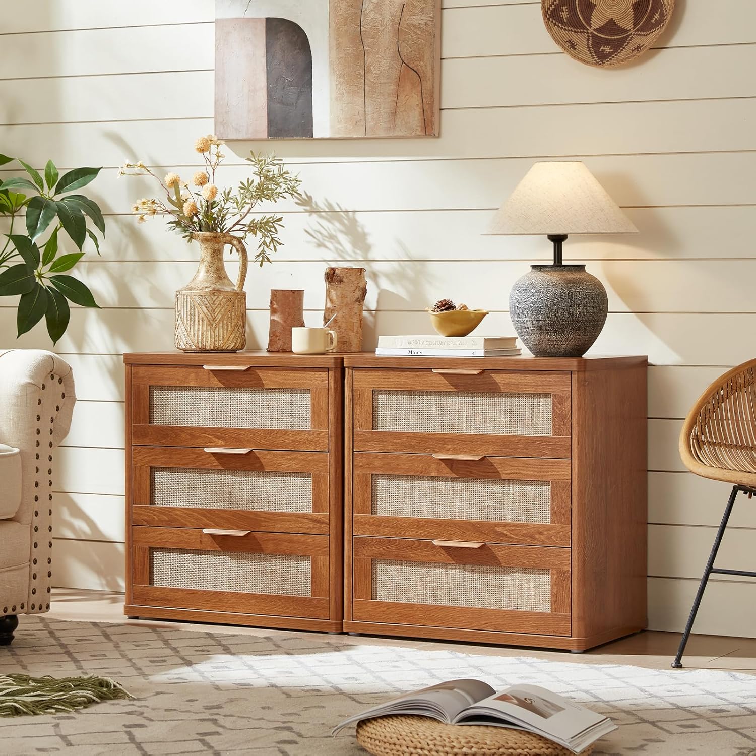 Bohemian style rattan drawers are both beautiful and functional