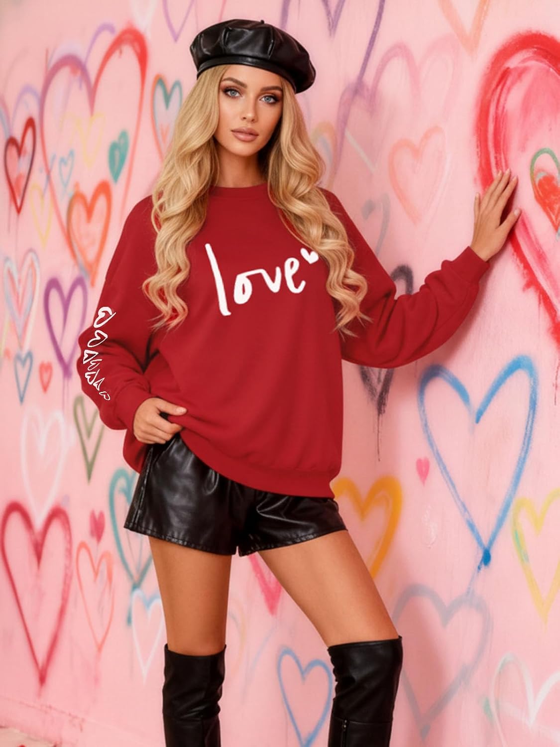 Valentines Shirts For Women Cute Love Heart Graphic Sweatshirt Long Sleeve Valentines Sweater Women