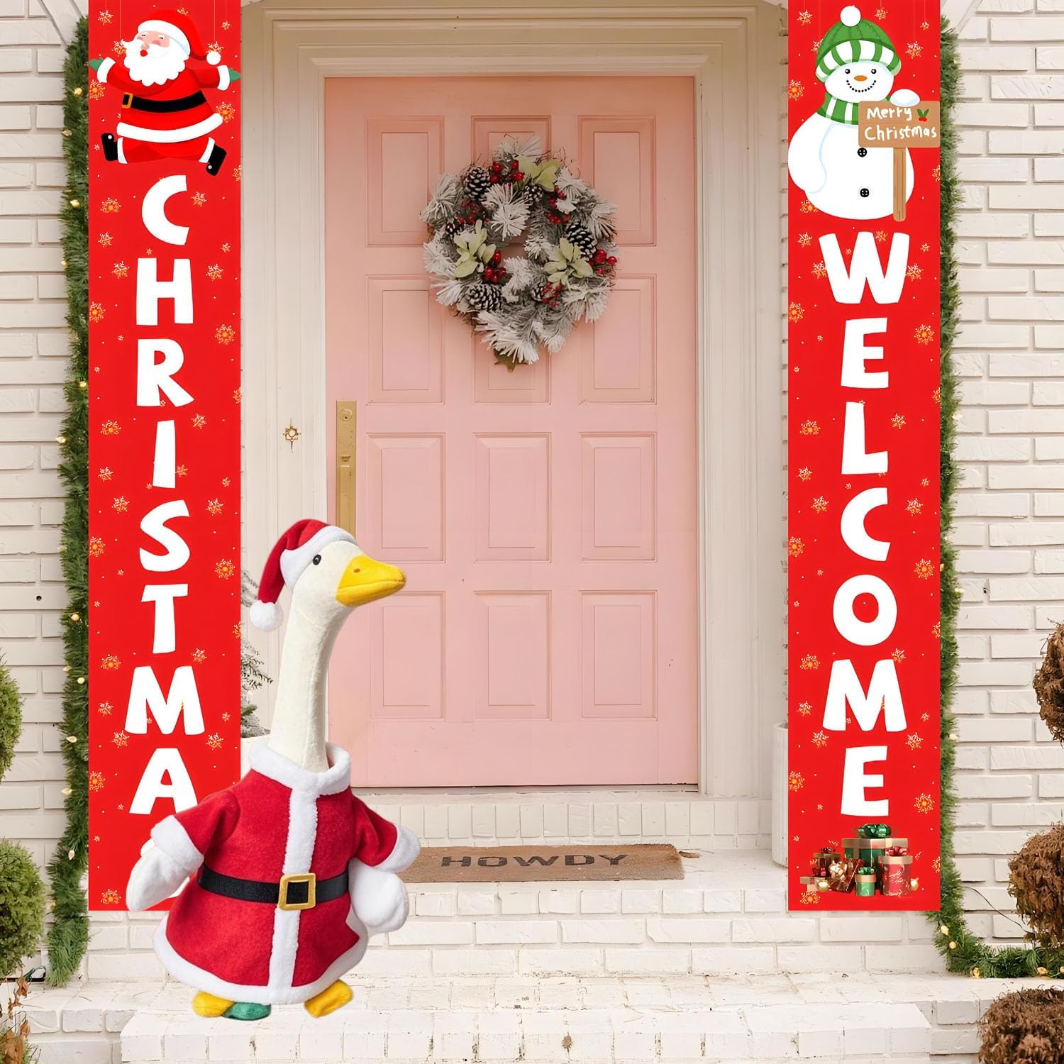 Porch Goose Santa Outfit,Goose Christmas Costume for 23″ H Large Porch Goose,Mrs. Claus Porch Goose Costume for Yard Lawn Outdoor Garden Patio Statue Santa Holiday Decor
