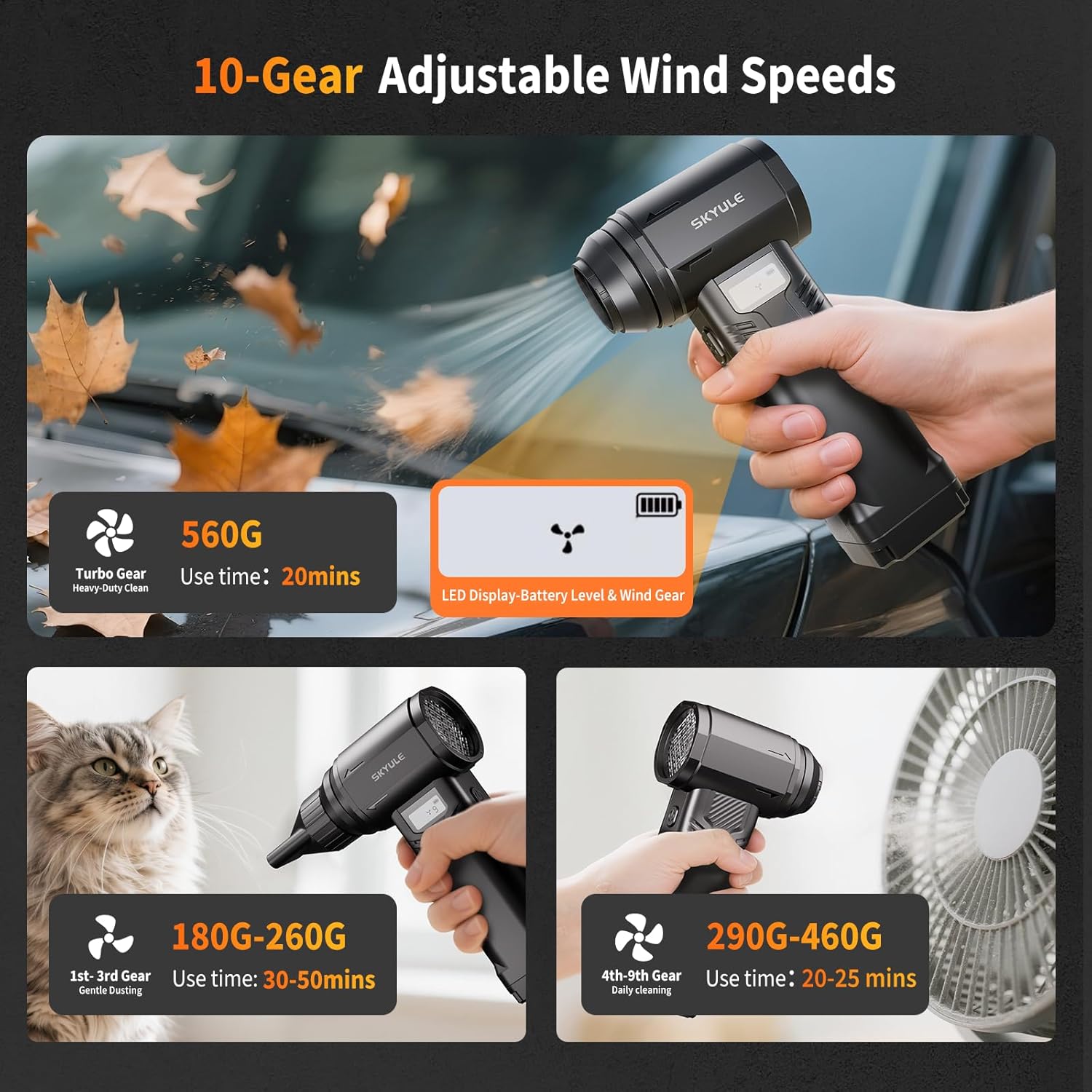 Compressed Air Duster-560g Super Power Airflow Electric Air Duster,10000mAh Rechargeable Cordless Mini Blower with LED Display,10-Gear Adjustable Dust Blower for Computer Keyboard, Car, Home, Outdoor