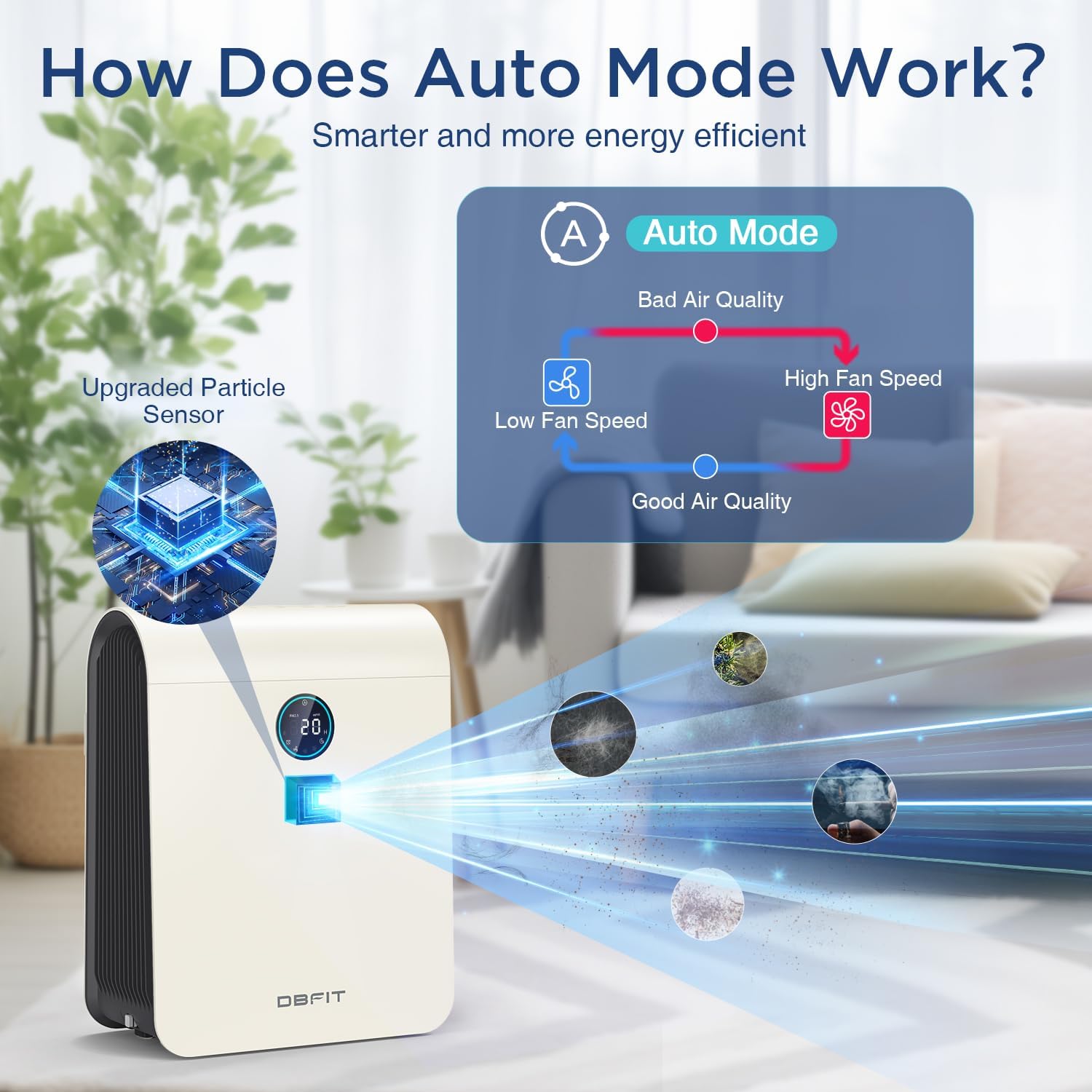 Air Purifiers for Home Large Room Up to 2590 ft² with PM 2.5 Display Air Quality Sensor, DBFIT H13 HEPA Air Purifier with Washable Filter, Auto Mode, Air Cleaner for Smoke Dust Pets Hair (Ivory White)