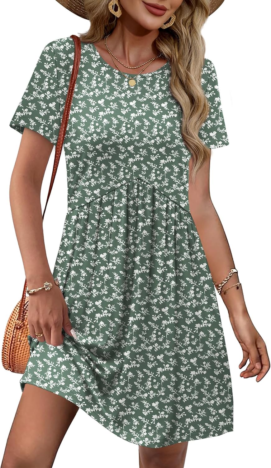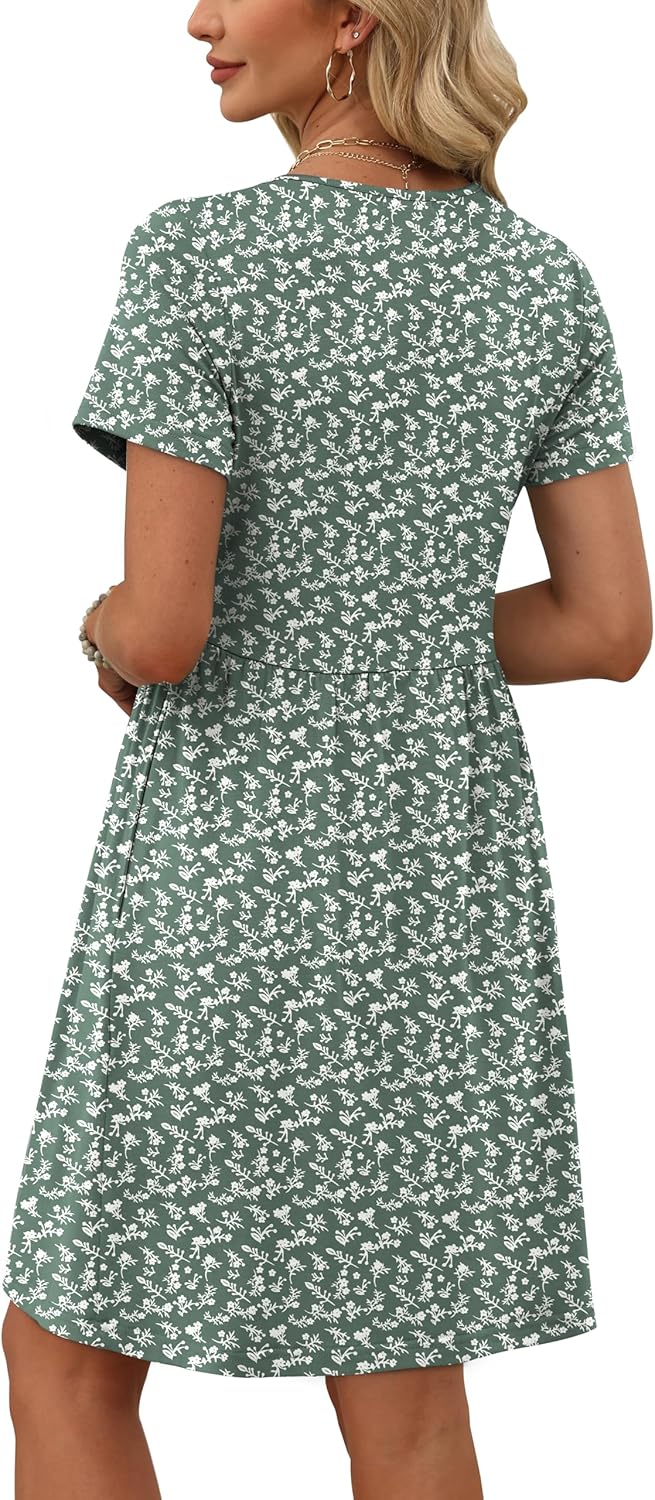 OFEEFAN Spring Dresses for Women 2026 Short Sleeve Crew Neck Casual Dresses Empire Waist Maternity Dress with Pockets