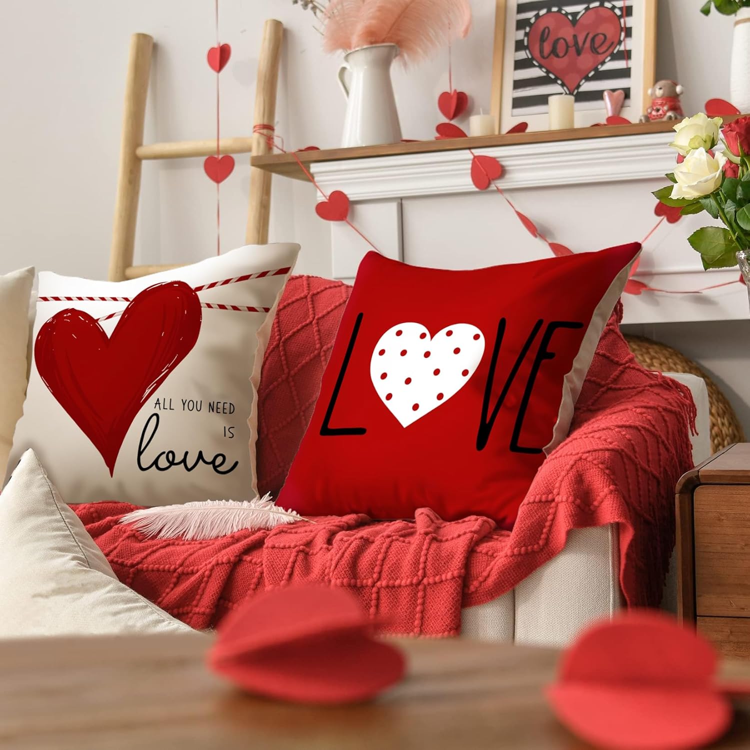 Valentines Day Outdoor Pillow Covers, 18 x 18 inch Set of 4 Waterproof Throw Pillow Cases, Love Cushion Decor for Home Outside Patio Front Porch House Farmhouse 2026(Love B)