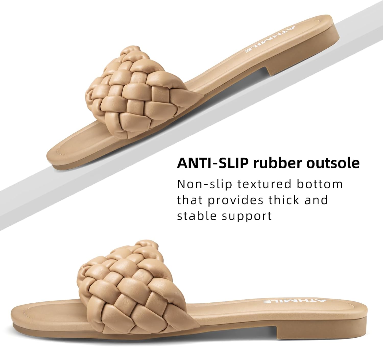 - 45% ATHMILE Braided Womens Sandals Round Open Toe Fashion Slide Sandals Women Dressy Summer Flat Beach Size 6-11