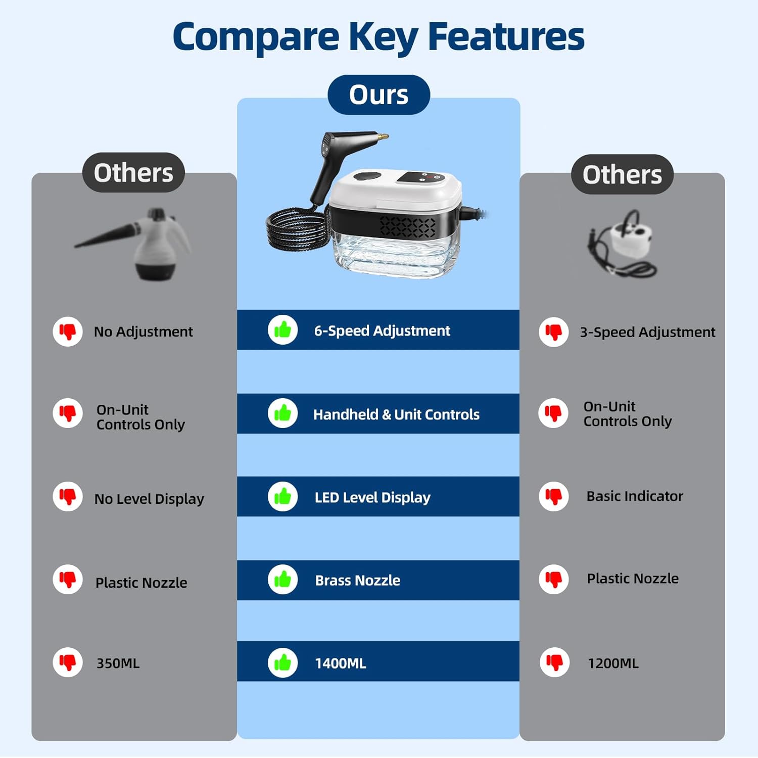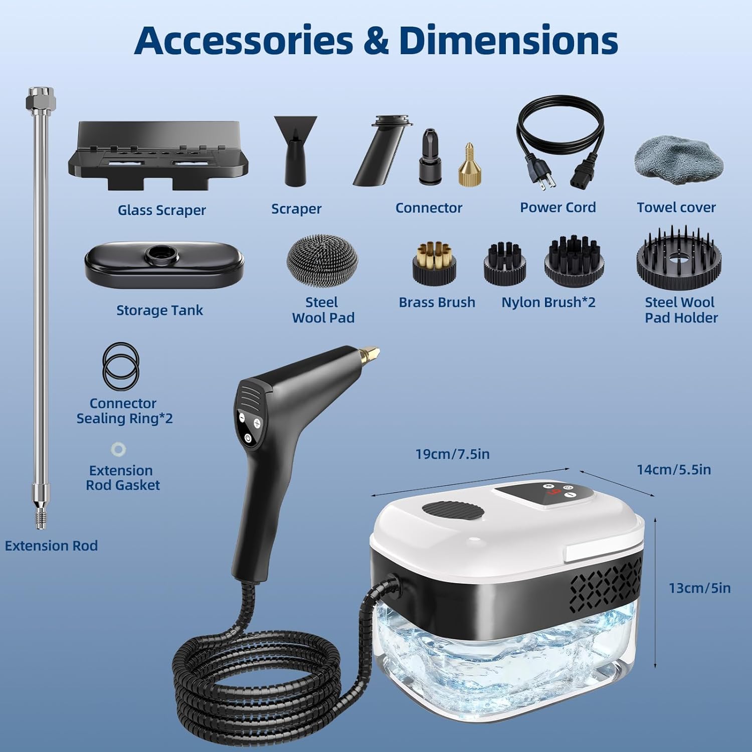 Steam Cleaner, Portable Steamer for Cleaning with 15pcs Accessories, 6-Level Adjustable Handle,15s Heat-Up, 1500W Pressurized Handheld Steam Cleaner for Home,Kitchen, Bathroom, Car,Tile,Grout