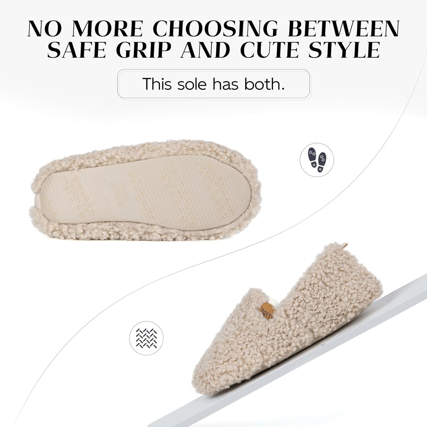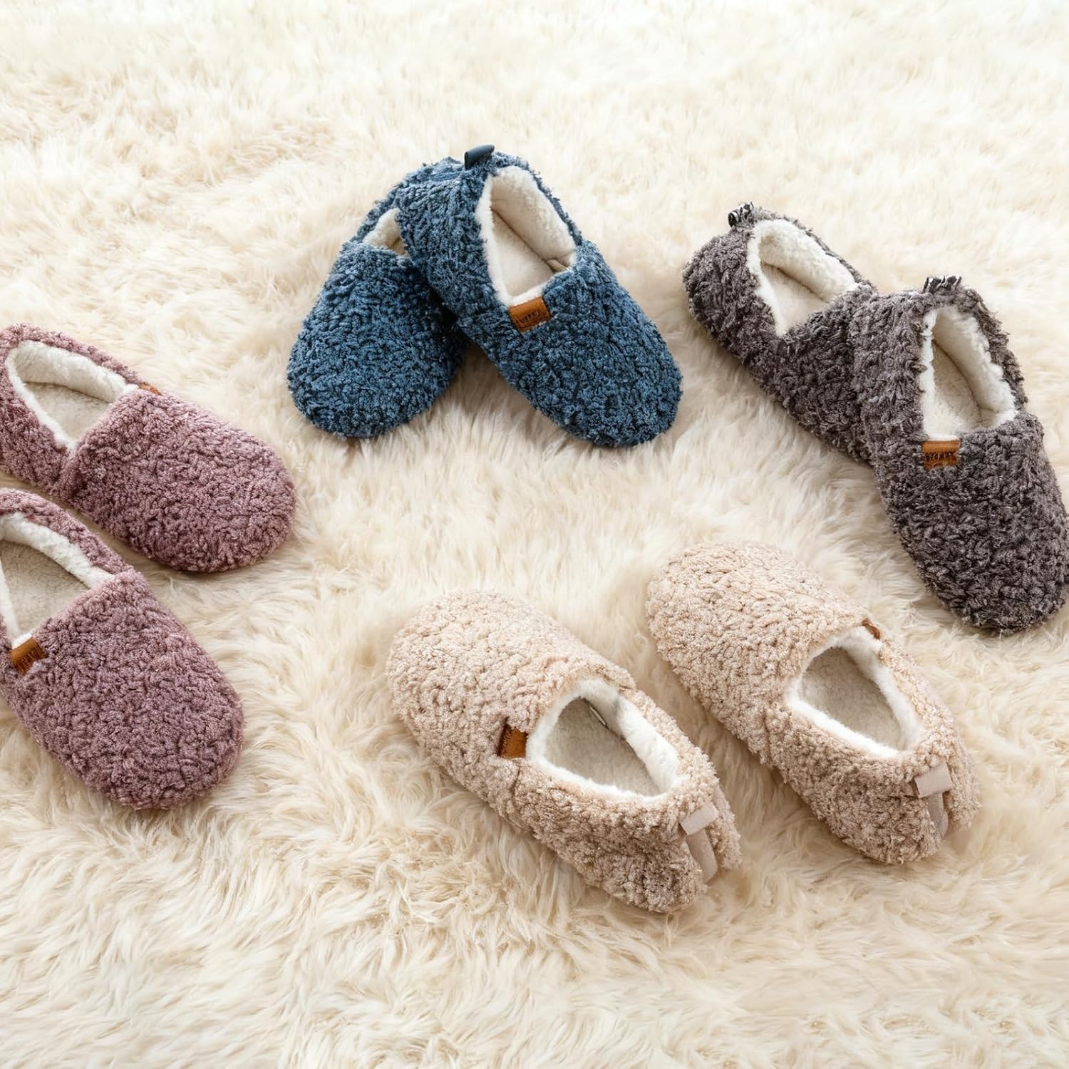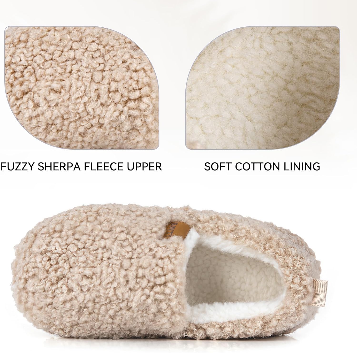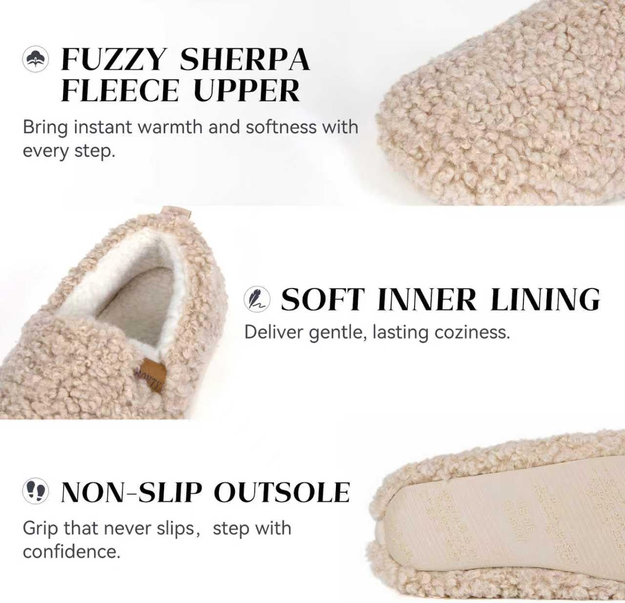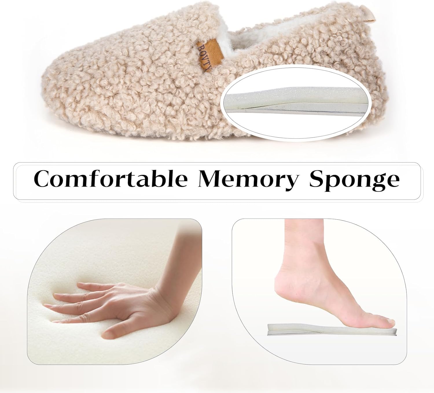 Women’s Soft Curly Full Slippers – Memory Foam House Shoes Cozy Loafer with Polar Fleece Lining Indoor Lightweight House Slip-on