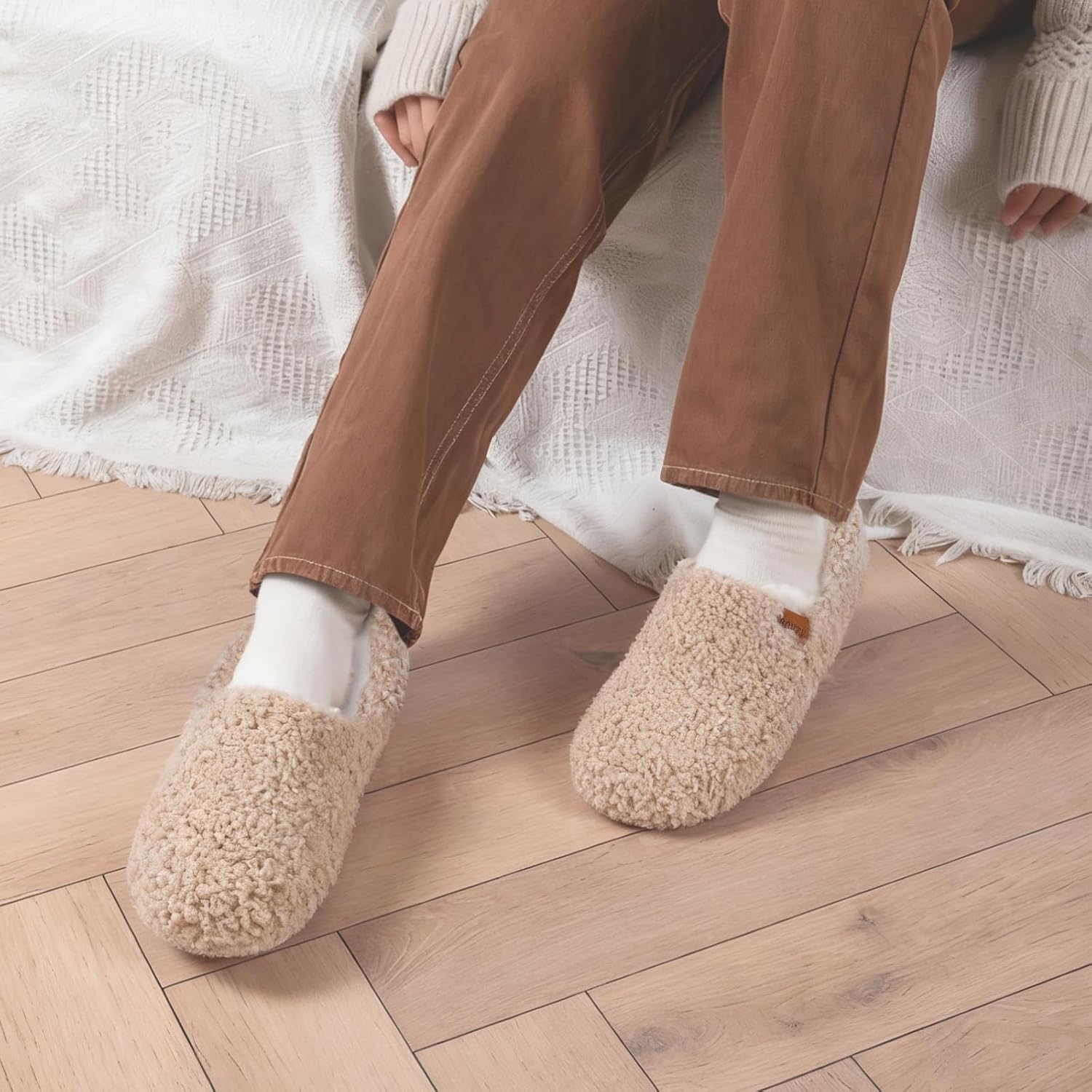 - 50% Women’s Soft Curly Full Slippers – Memory Foam House Shoes Cozy Loafer with Polar Fleece Lining Indoor Lightweight House Slip-on