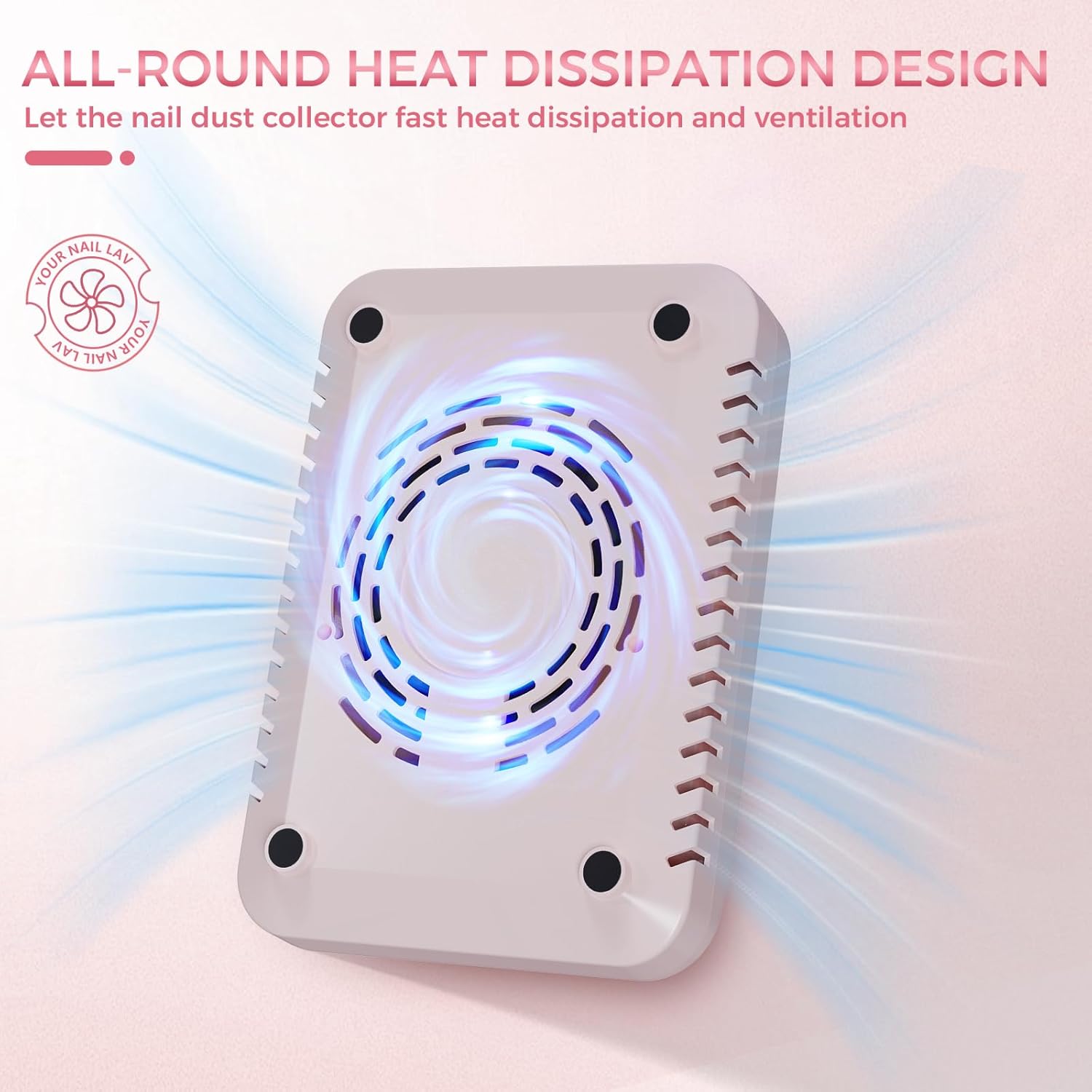 Built-In Cooling System:Designed with rear ventilation openings that help maintain steady airflow and prevent overheating during longer sessions. This ensures more stable performance over time, making it a dependable nail fan and dust collector for busy nail days or back-to-back appointments