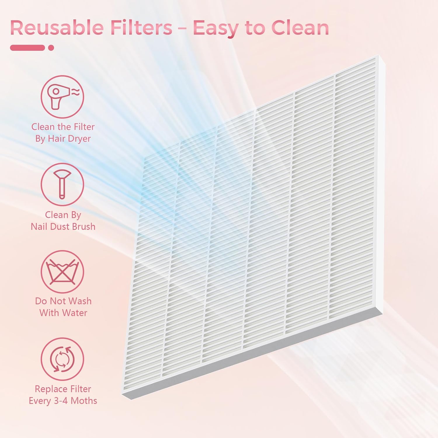 Reusable Filter with Easy Magnetic Removal:Comes with a reusable mesh filter that attaches securely with a magnetic design. Cleaning is quick—just use a dryer or soft brush to remove buildup. Replace every 3–4 months for best results. No more constant spending on disposable filters, making this nail supplies choice more budget-friendly