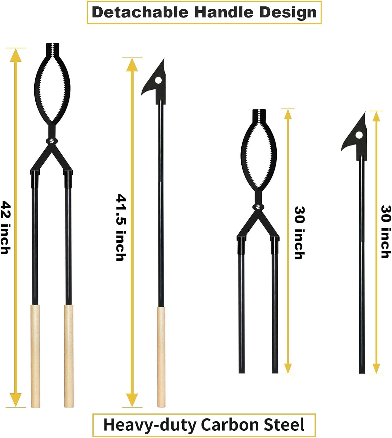 42″ Fire Tongs Firewood Log Grabbers and Fire Poker Set, Portable Detachable Heavy Duty Large Fire Tongs Fire Poker Tools Set for Fire Pit, Fireplace, Camping, Bonfires Outdoor/Indoor