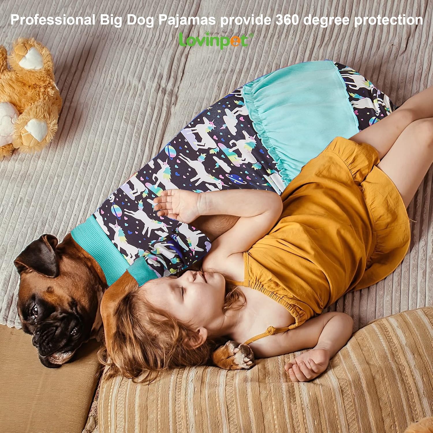 A: LovinPet designs pajamas tailored for 99% of medium & large U.S. dog breeds, including wider chests and heavier builds. Made with soft, stretchy, premium fabric—our suits bring comfort, happiness, and a better daily life for your furry family member.