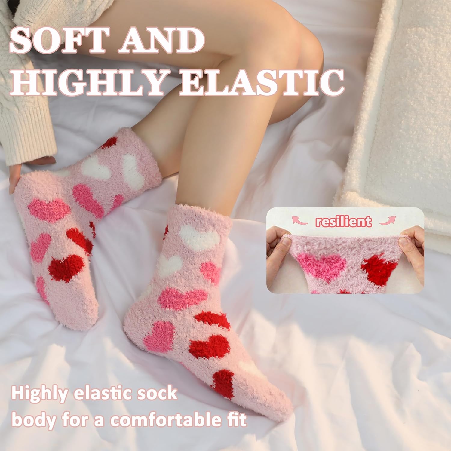 Fuzzy Socks,Cozy Socks for Women Soft Pink Fluffy Slipper Socks for Mom Wife Girlfriend Valentines Christmas Birthday Day Gifts