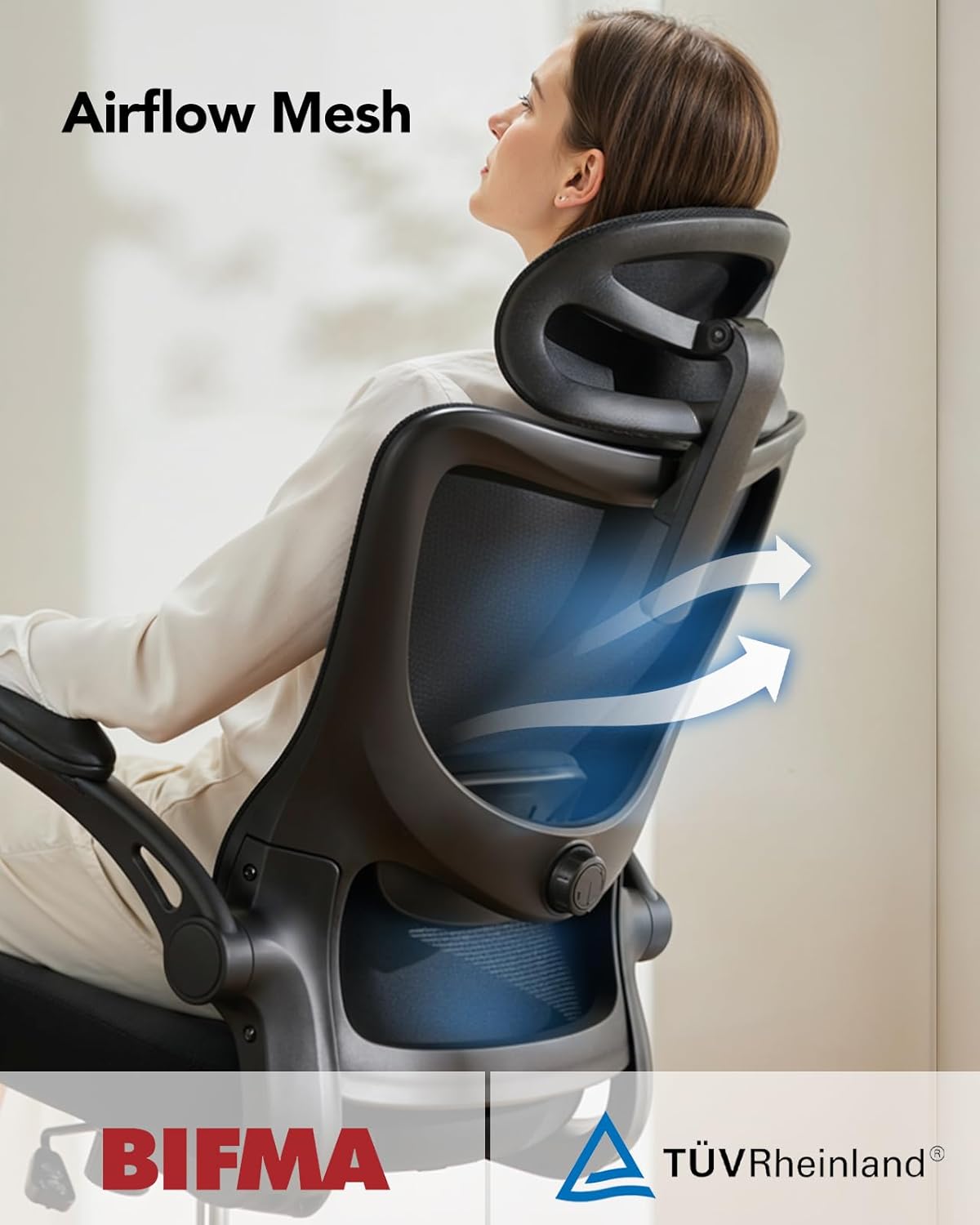 Transform the way you work with the HUANUO office chair, providing comfort and support no matter how you work. Featuring a 2D adjustable headrest, 3D armrests, flexible lumbar support, and a breathable mesh backrest, this chair adapts to your needs for personalized comfort.