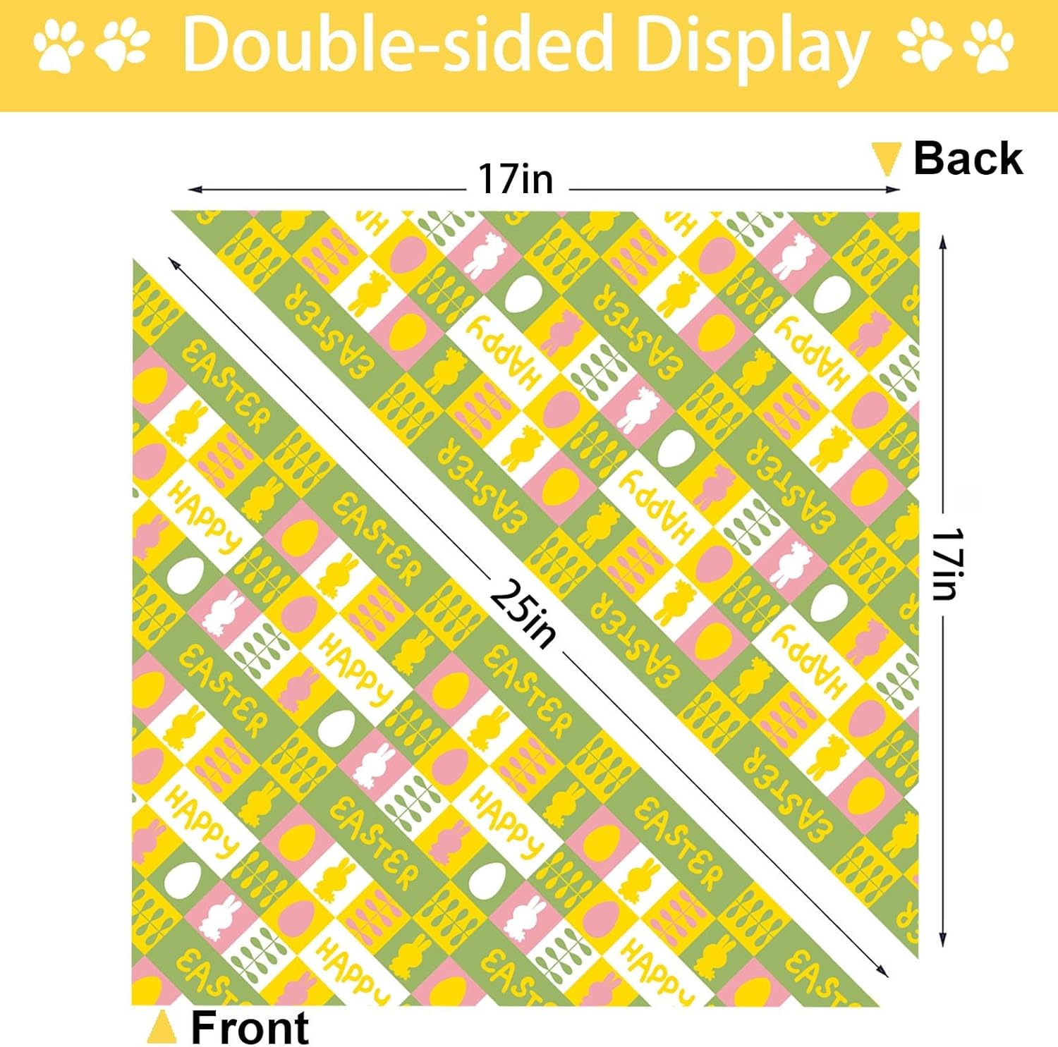EASTER PATTERN DESIGN: Two dog Easter bandanas feature Classic Easter colors – green & yellow and rabbit easter egg carrot pattern on both sides. Perfect pet accessories decoration to make your dogs and cats look more cute and attractive.