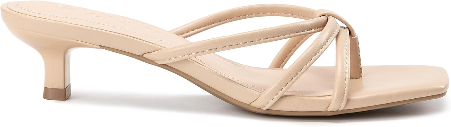 Athlefit Women’s Strappy Kitten Heels Square Toe Flip Flop Low Heels Slip On Thong Heeled Sandals