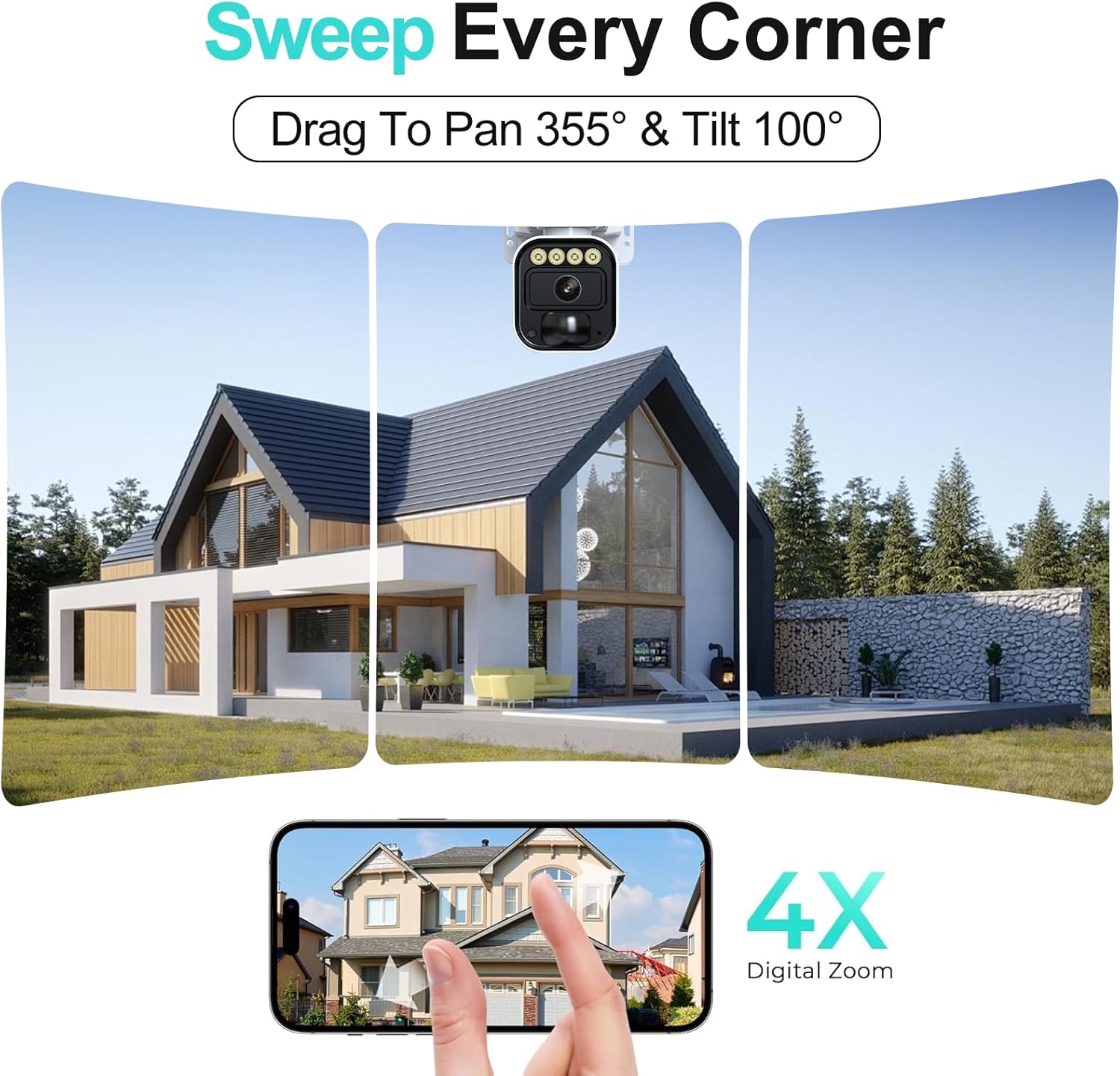 4G LTE Cellular Security Camera Solar Security Cameras Wireless Outdoor No WiFi Security Camera 24/7 Recording,2K Color Night Vision,2-Way Talk,Cloud & SD Card Storage,IP65,Built-in SIM Card