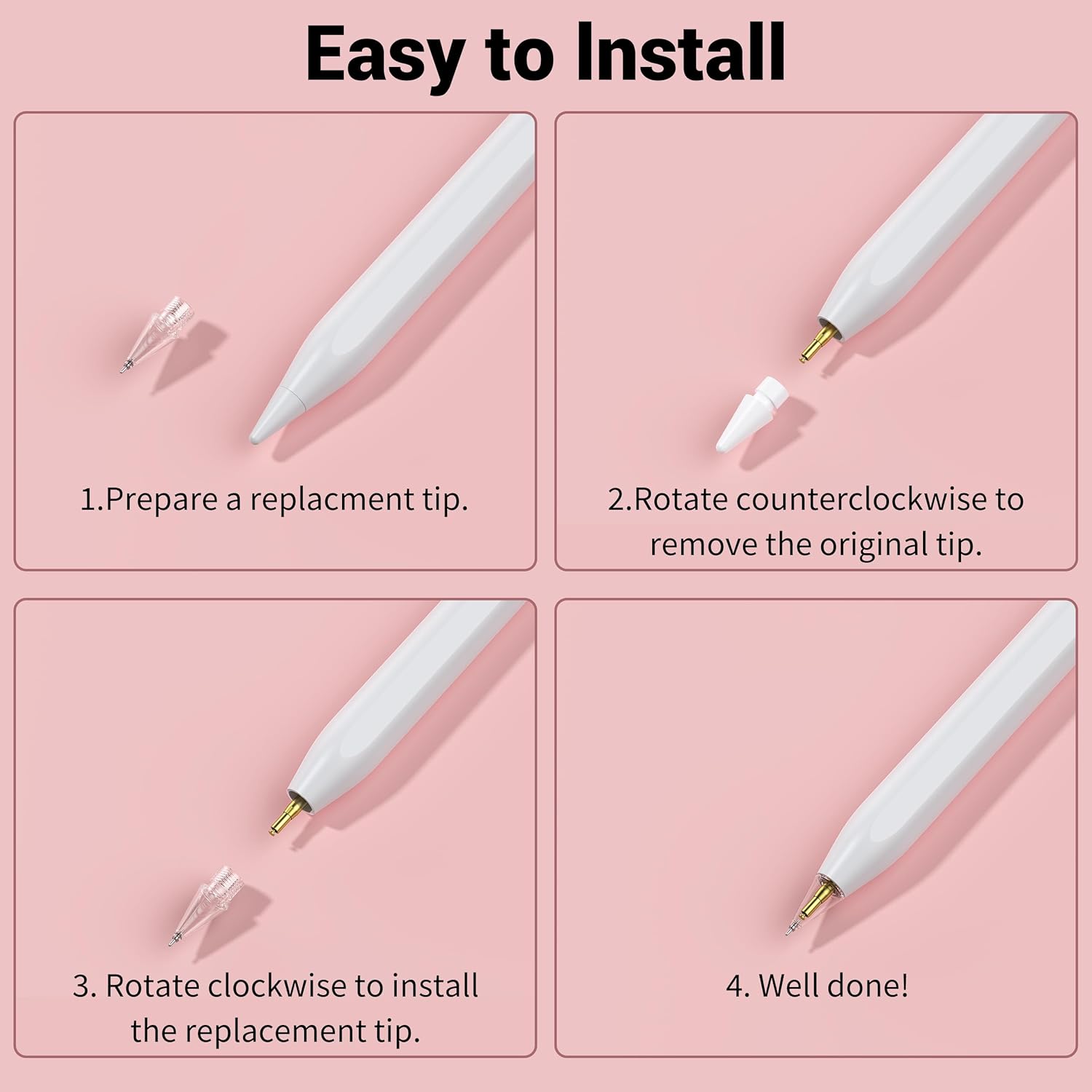 ✔ Easy to Install & Replace – Directly to slightly spin the Stylus Pencil replacement nib out to remove and turn clockwise to install the tip; please do not pull out or insert directly.